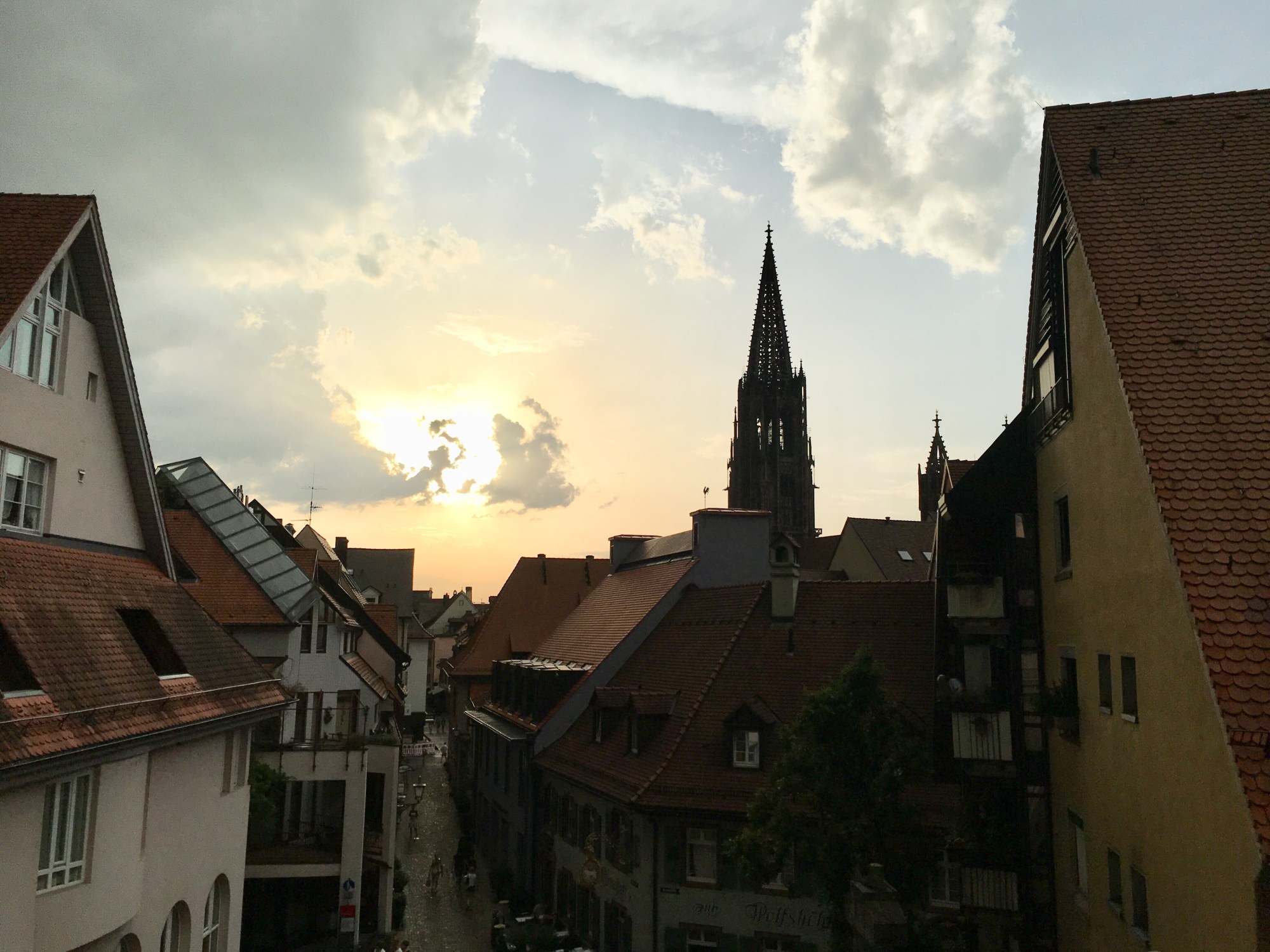 After the war, they rebuilt the Altstadt – Old City – on its medieval plan, so the streets are really close together and it provides nice shade on hot days. It also means that the city streets are built surrounding the church.
