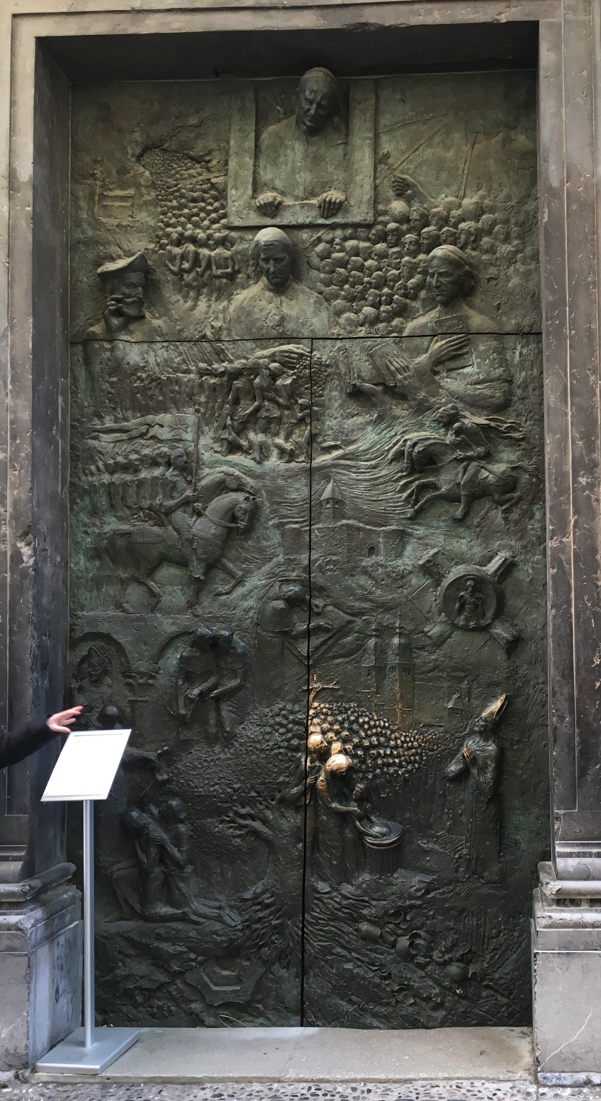 When Slovenia split from Yugoslavia in 1991, Pope John Paul was one of the first to recognize the new country, so he gets a place on the door to their cathedral. The door is pretty cool–it has all of Slovenian history on it from the Romans on up. By the by, the Romans had a town here called Emona until the 4th or 5th century. The tree near the bottom is the linden tree, a symbol of Slovenia.