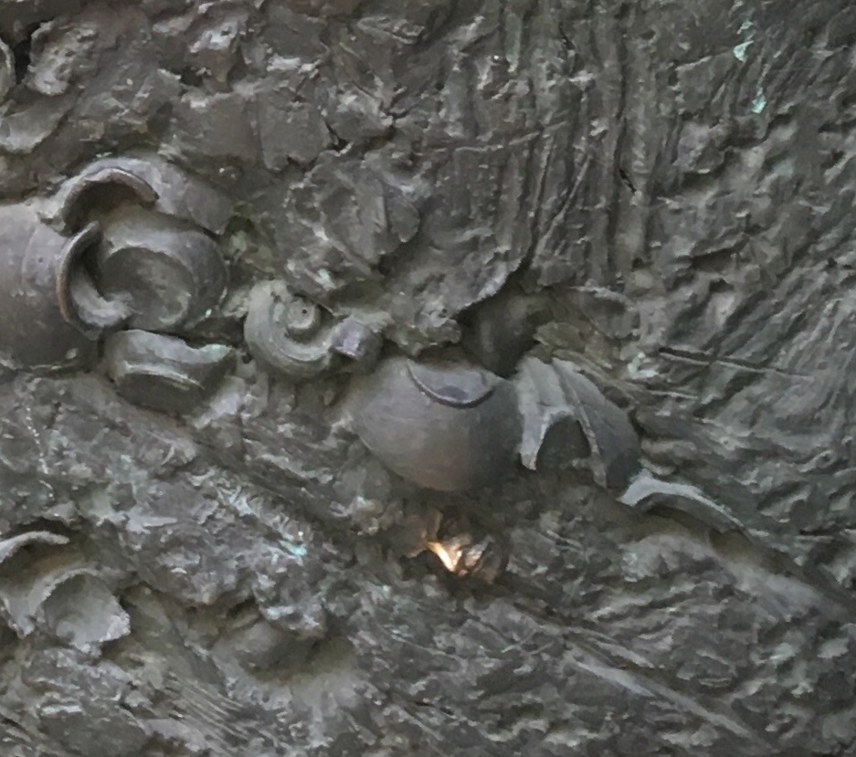 You can see where the artist signed his name at the bottom–it’s the little face. People touch his nose for good luck.