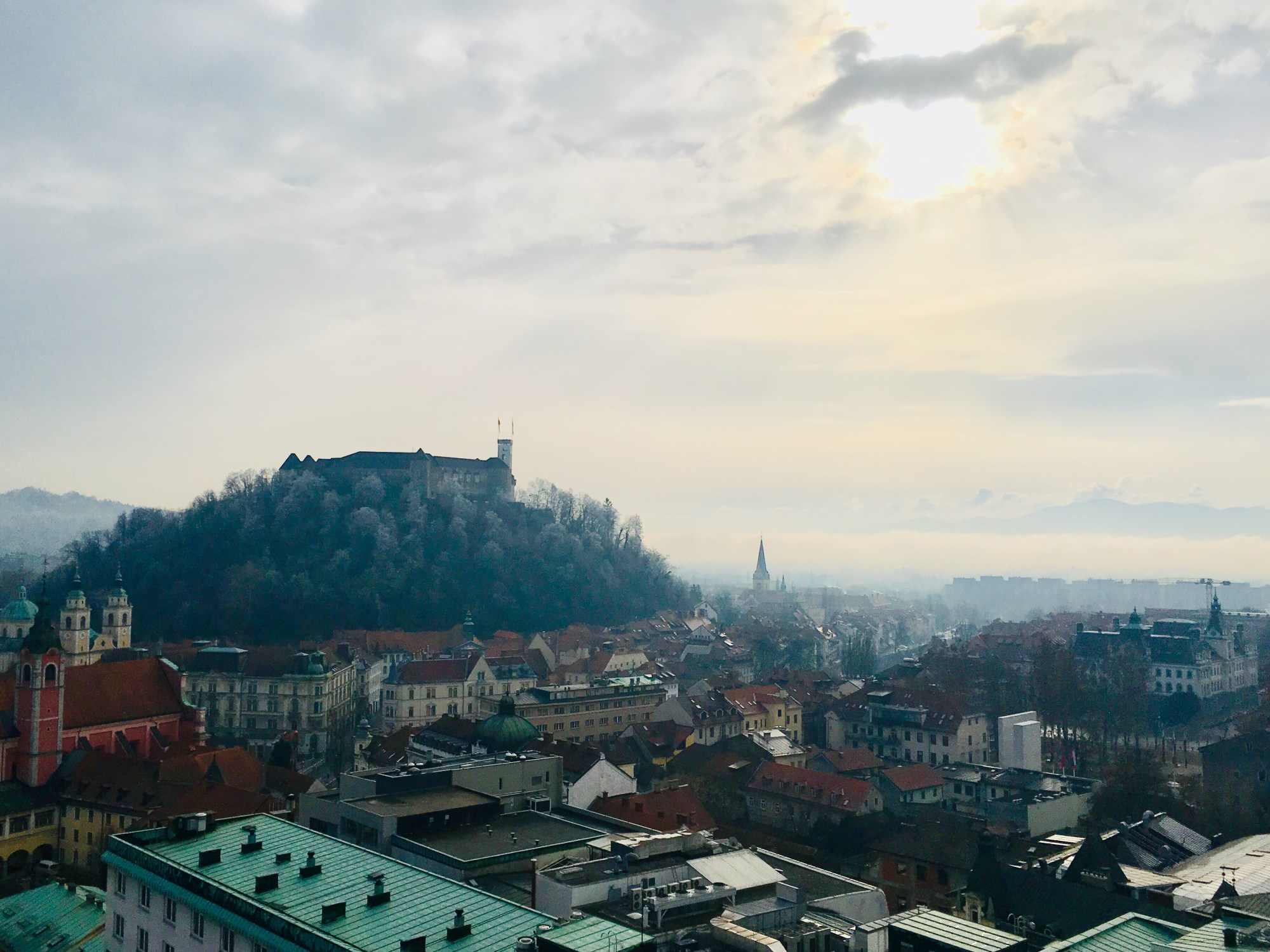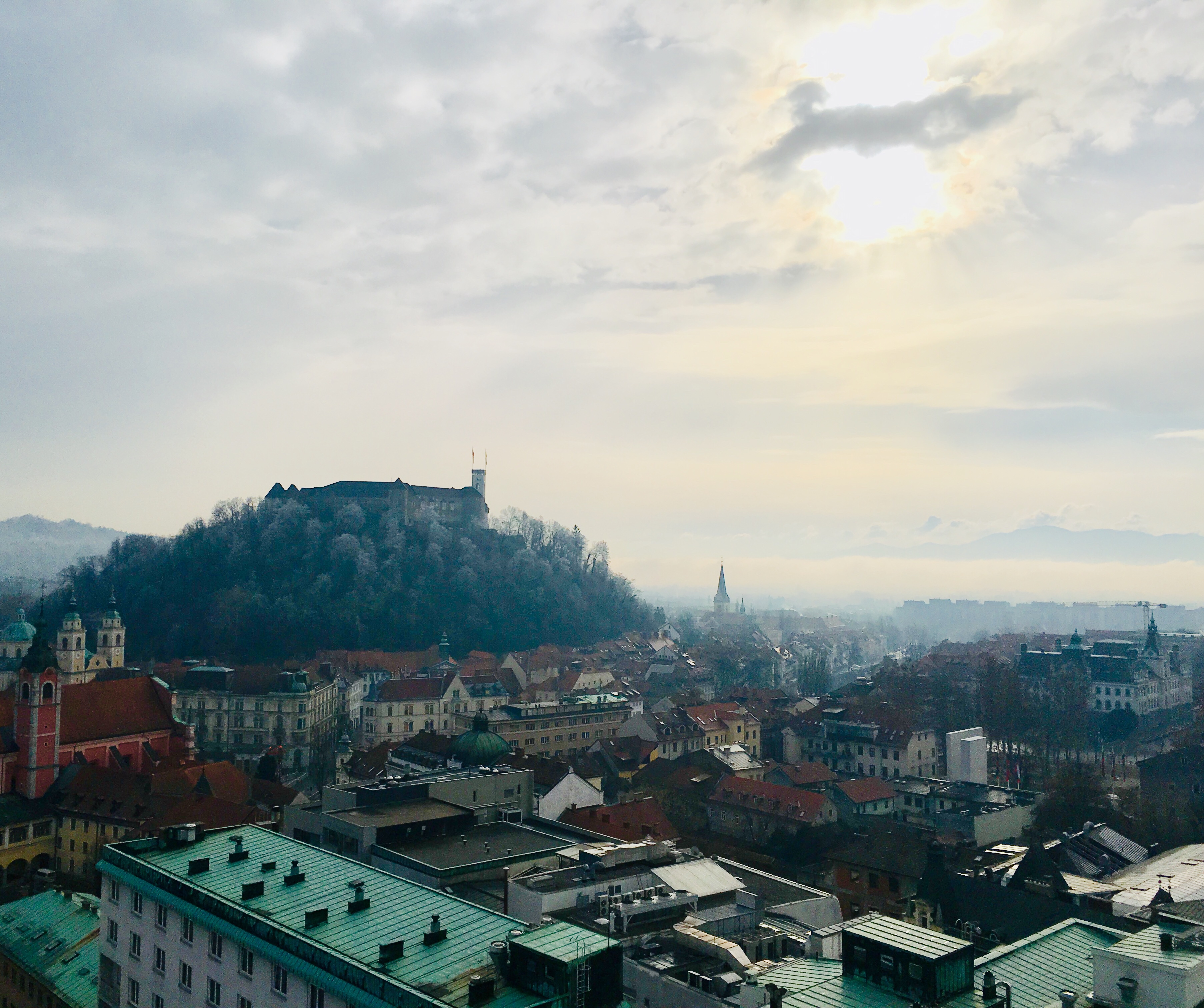 Here are a couple views of the city from its castle. The river here is called the Ljublanica — the “lil’ Ljubljana.”