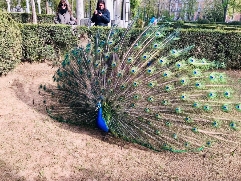 While walking, we got to see a peacock with crazy mating form. It was insane! He was sort of dancing and he would vibrate his feathers whenever he caught sight of one of the lady-peacocks. Look at those eyes!