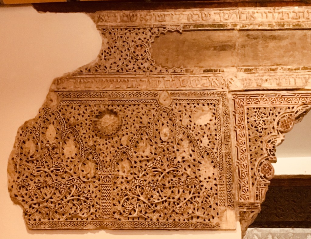 Here’s another example from within the synagogue. You can see the Hebrew written up at the top, but also the influence of Arabs based on the design and symmetry.