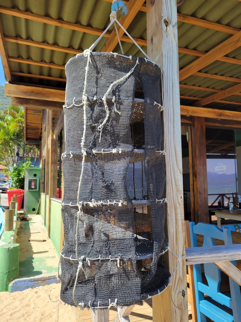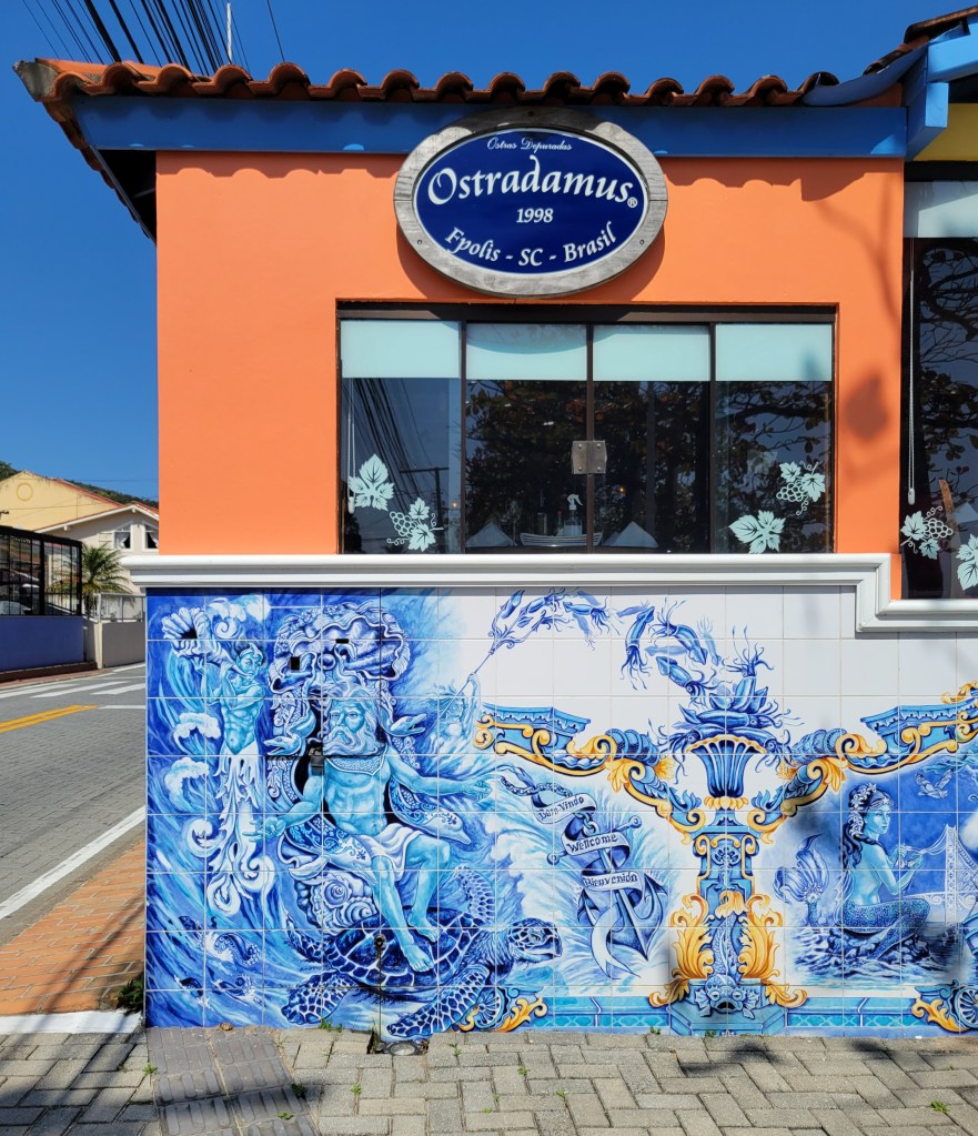 Floripa is famous for its fishing and particularly its oysters. The middle picture is an oyster trap–we had a fun time trying to figure out how exactly the oysters made their way into the trap. How exactly do they swim? If you have a good eye or know your history–or maybe you’ve been there like Barbara and Nancy–you’ll see the tiles on the restaurant are very similar to the tiles on the buildings in Lisbon and other cities in Portugal. This side of the island looks quite a bit like Portugal.