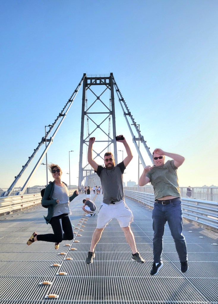 We were excited to visit the old bridge that connects Floripa to the mainland–check out the jump! There is another bridge for cars now, so this one is for pedestrians and bikes. We were surprised at exactly how much the bridge swayed. I know that it’s a feature not a bug, but it was significant sway-age. We felt like we were drunk.