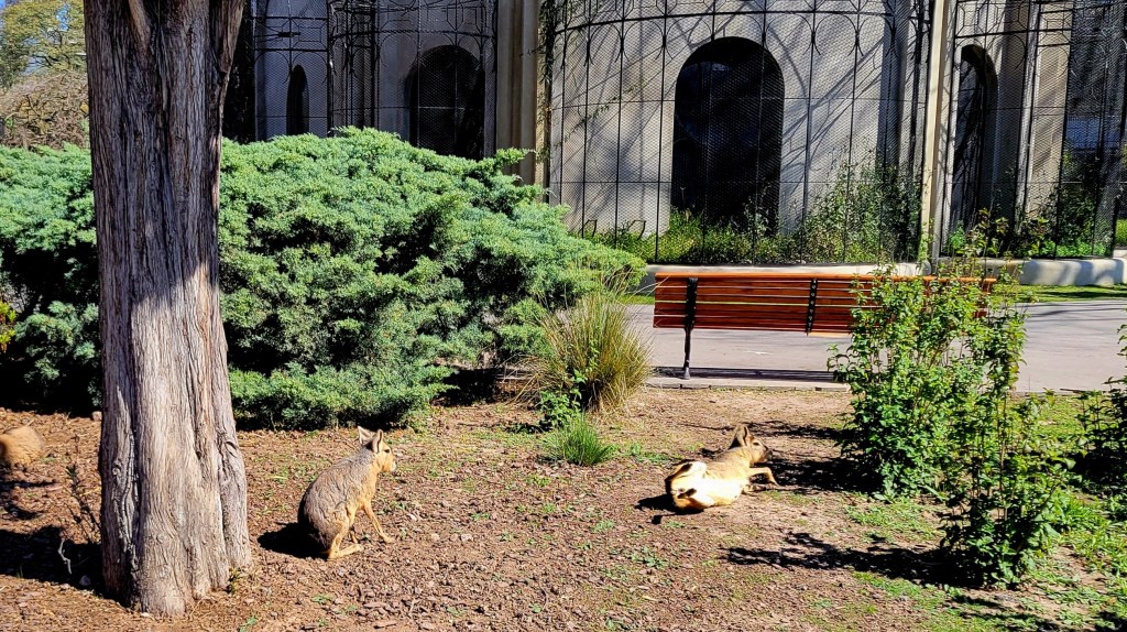 Across from the botanical gardens was Ecoparque Buenos Aires, which was sort of an open air zoo. Some animals were in fenced in areas, but most seemed to roam free. This zoo had lots of animals we recognized, but the many Patagonian hares caught our eye.