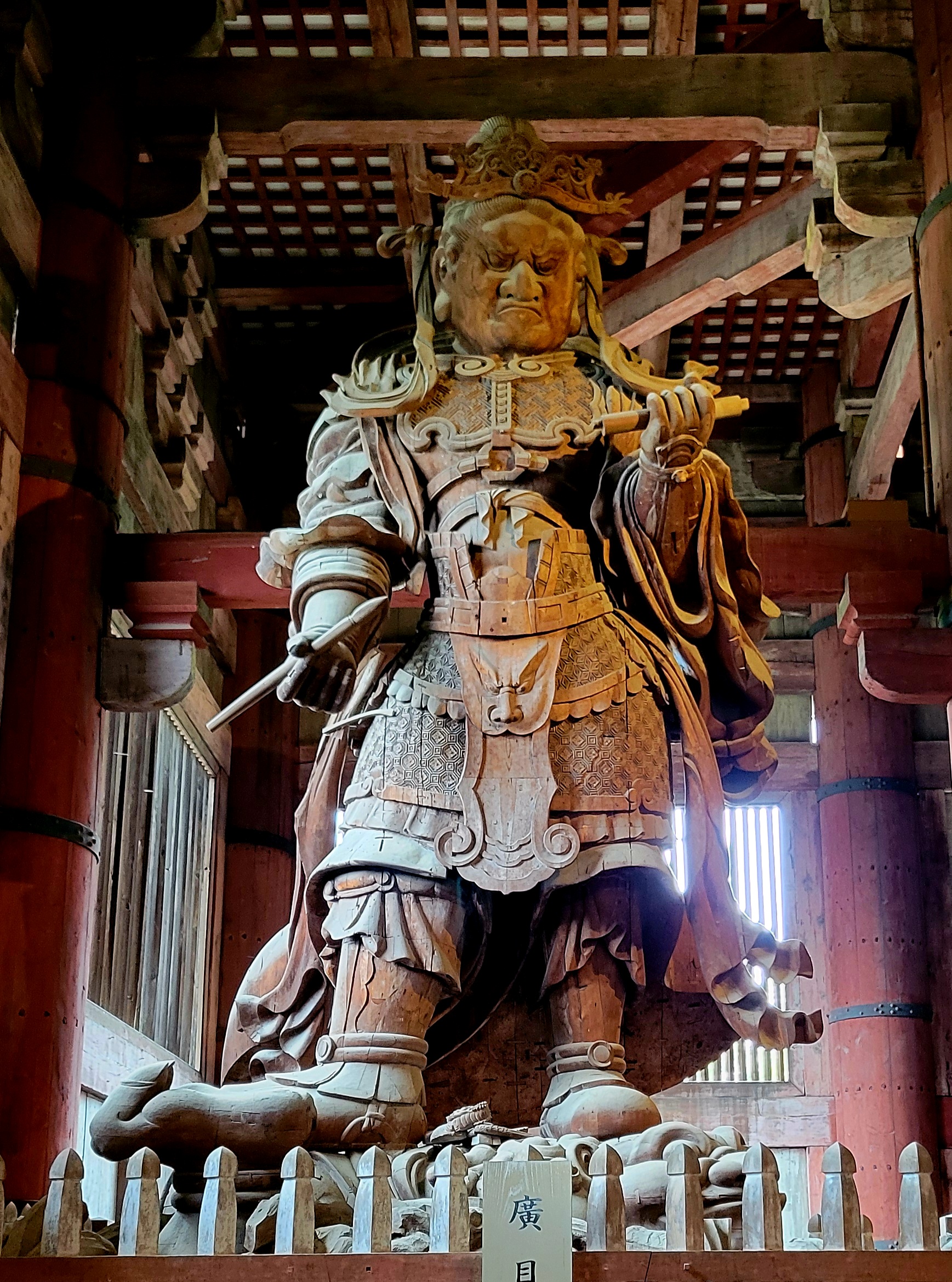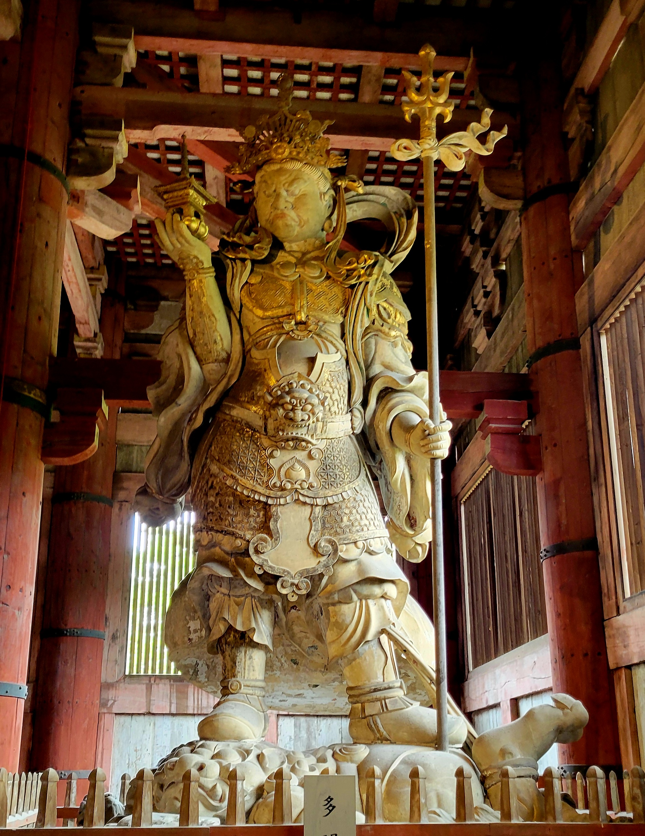 Kelly and I visited the Tōdai-ji temple. Until the turn of the century, this temple was the world’s largest building made entirely of wood. It featured, you guessed it, a gigantic Buddha. Here are some shots of the temple, its gate, the Buddha, and other Buddhist guardian deities.
