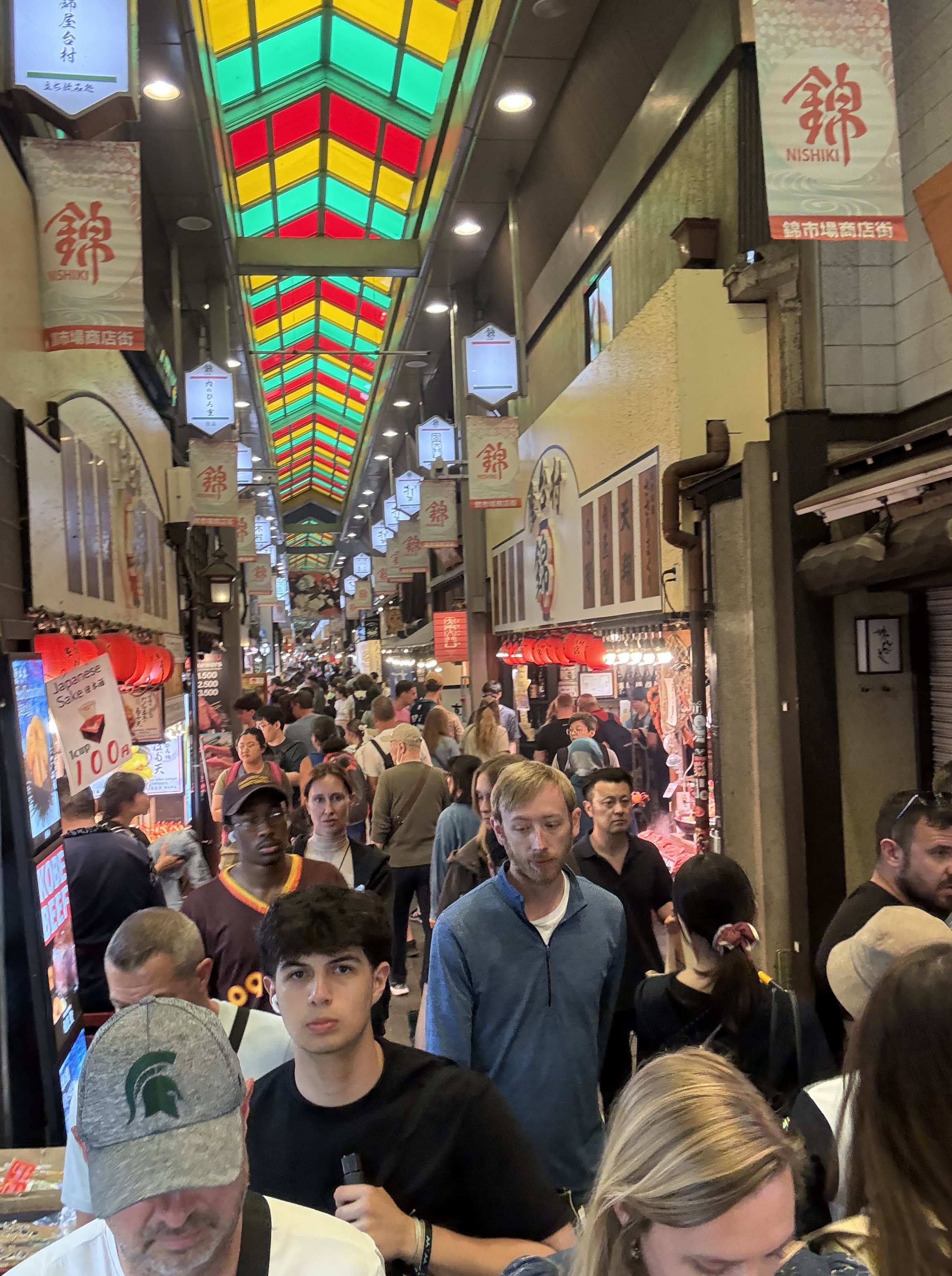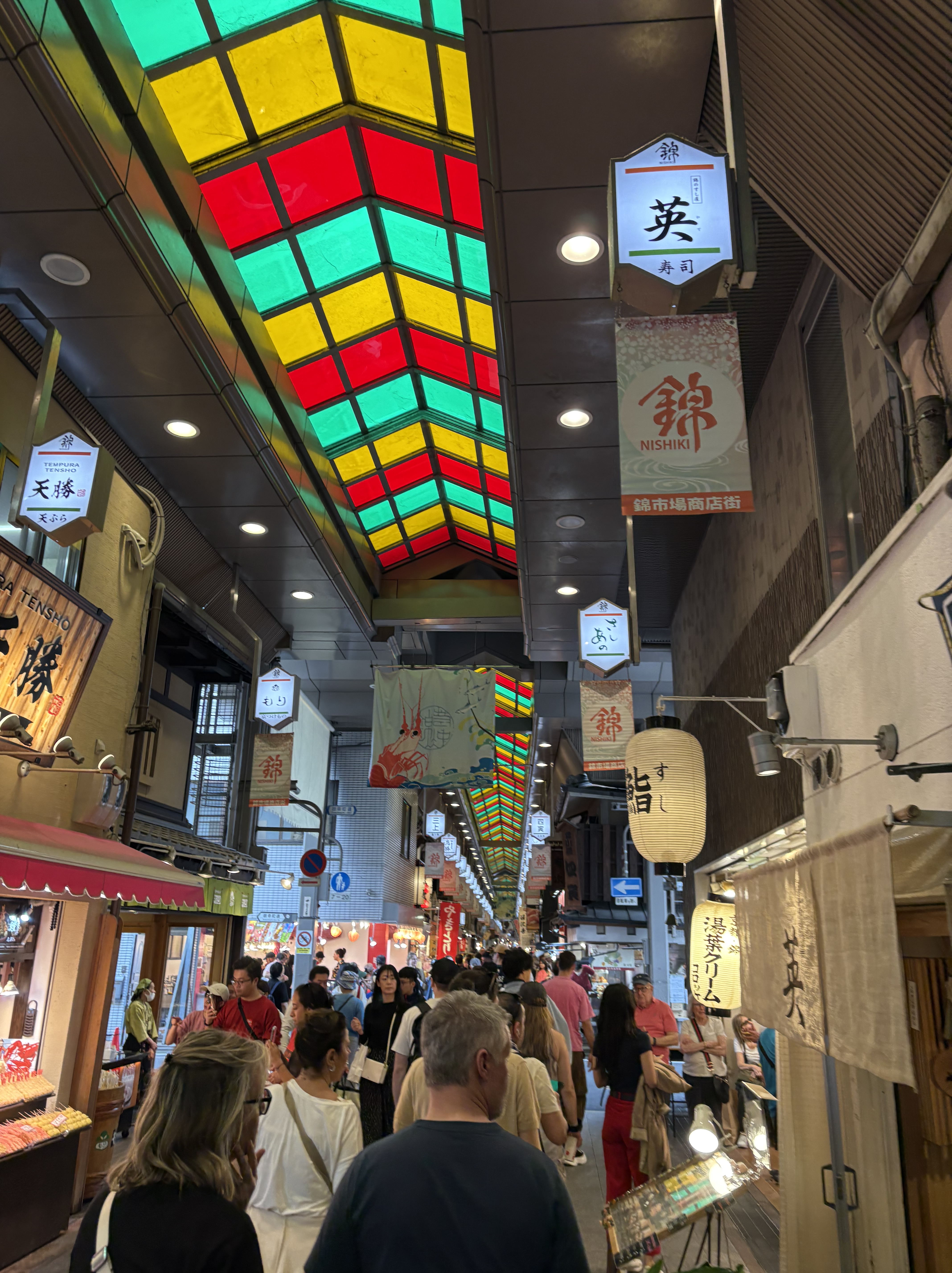 Thankfully, I started feeling better last night, so Kelly and I headed out to the Nishiki Market, which runs through central Kyoto. This market doesn’t specialize in anything too exotic (though there were some wild squid-on-a-stick situations), but it’s pretty fun to soak up the market’s energy, even when a good amount of the patrons are tourists.