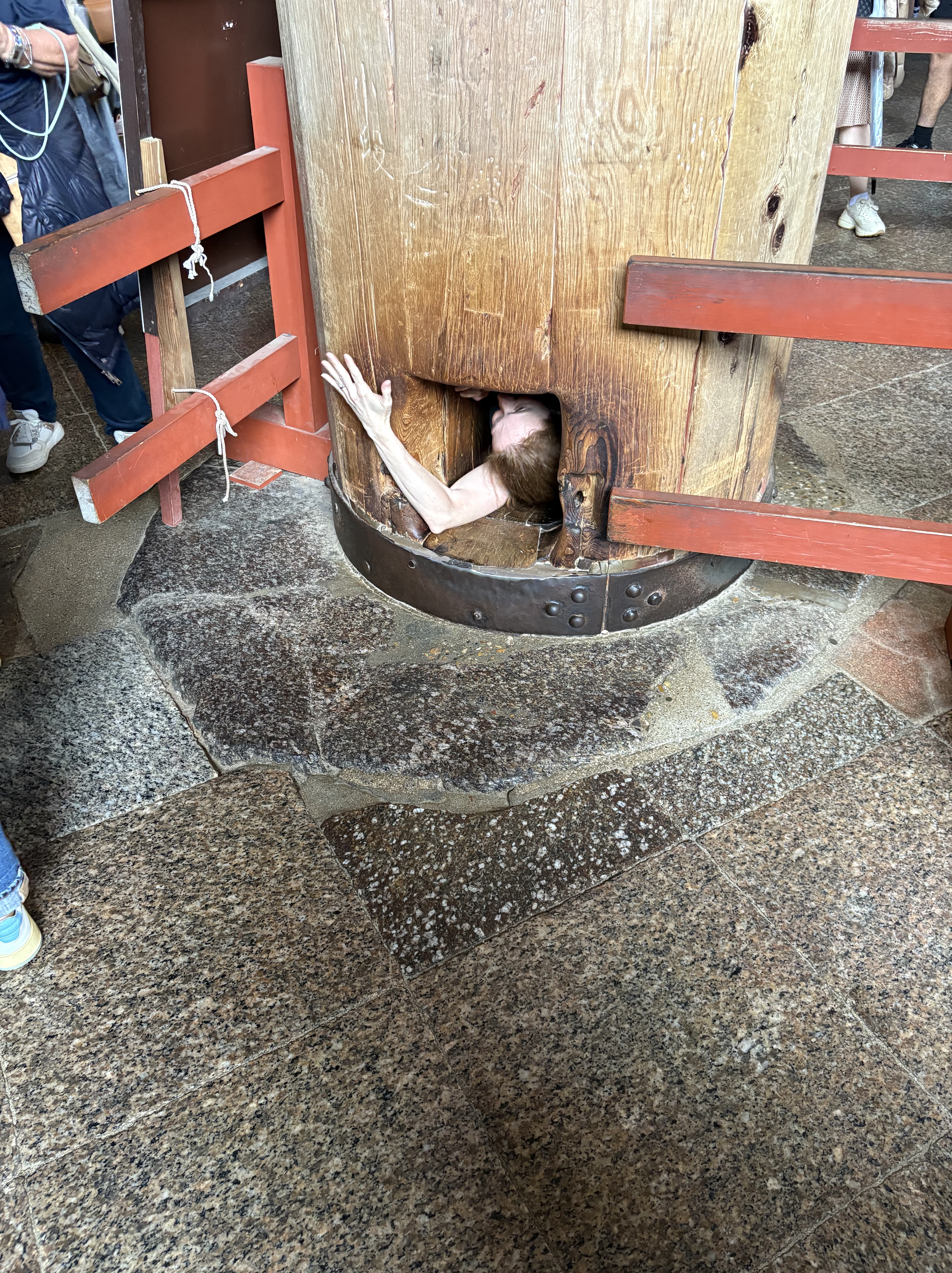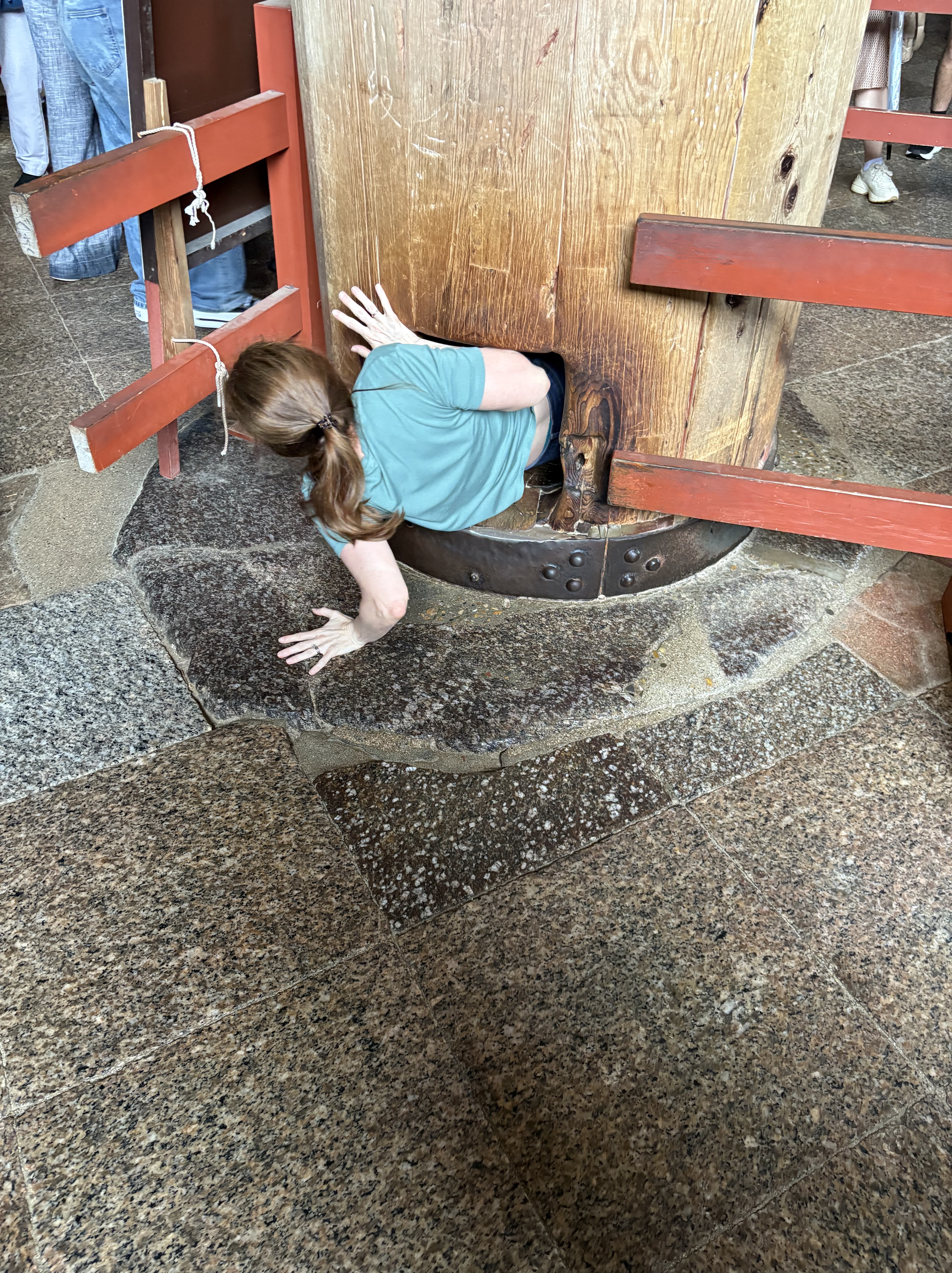 There was a pillar inside that supposedly allows you to obtain enlightenment in your next life if you can squeeze through the small square opening at its base. Woot Kelly!