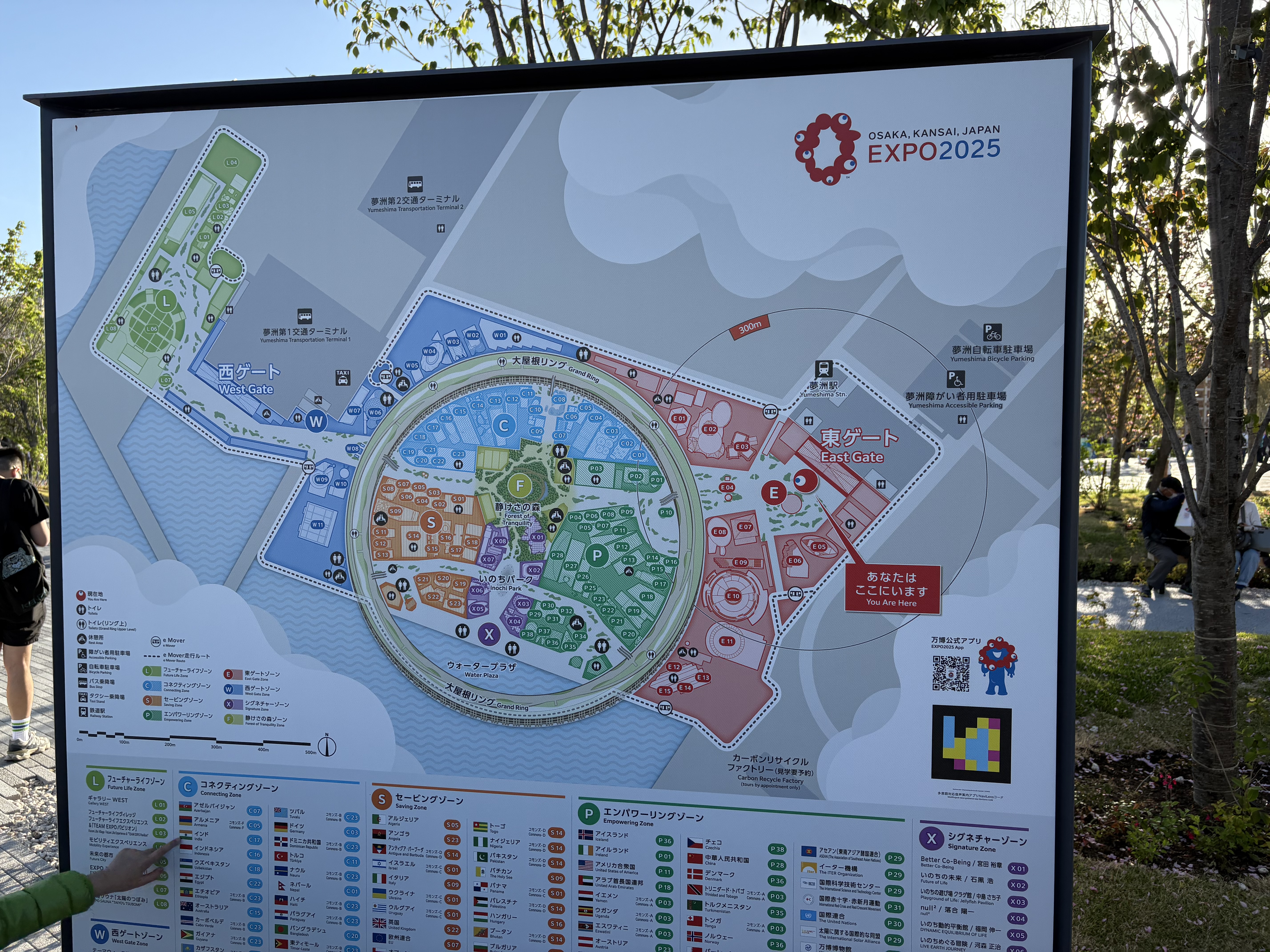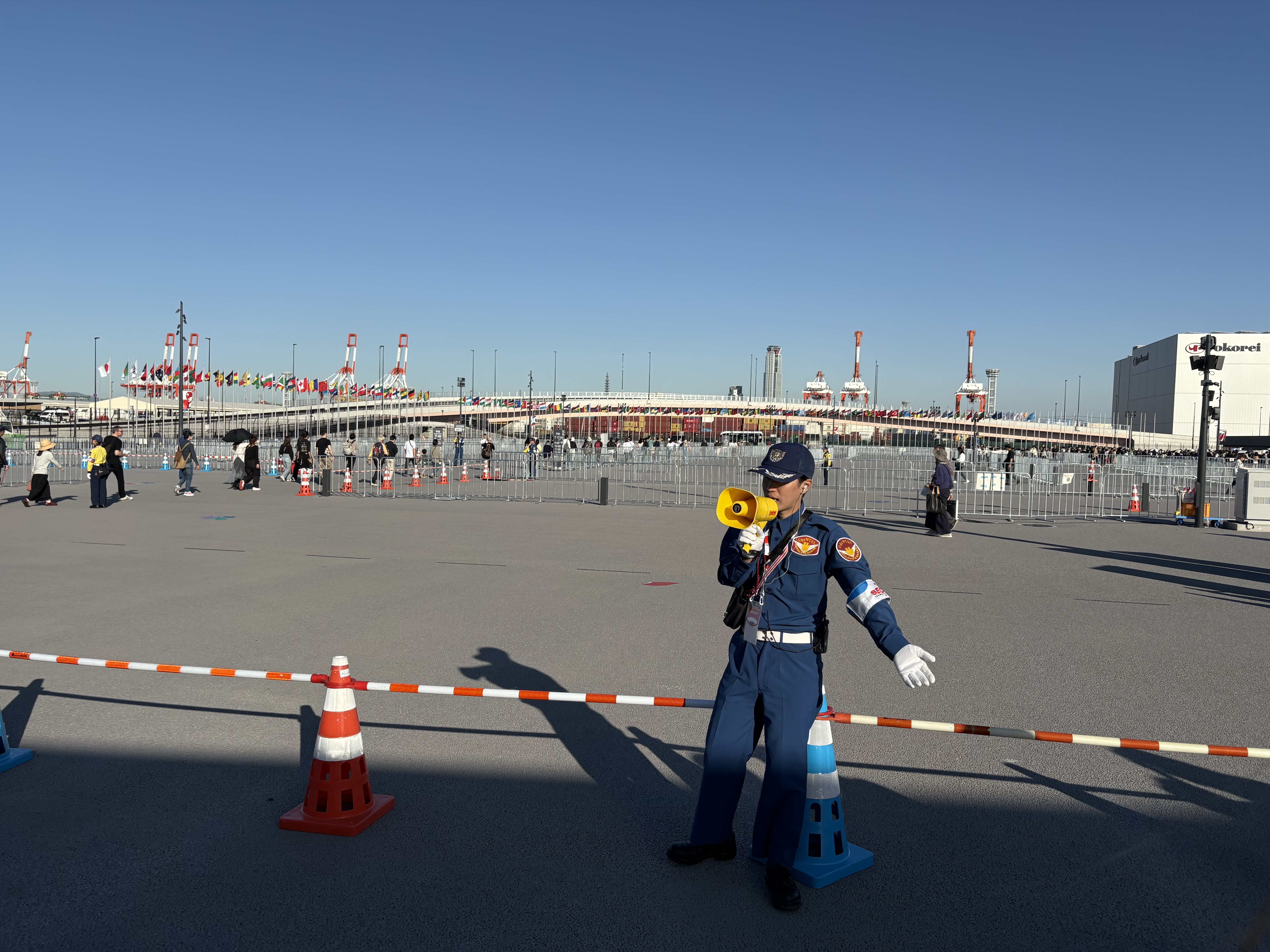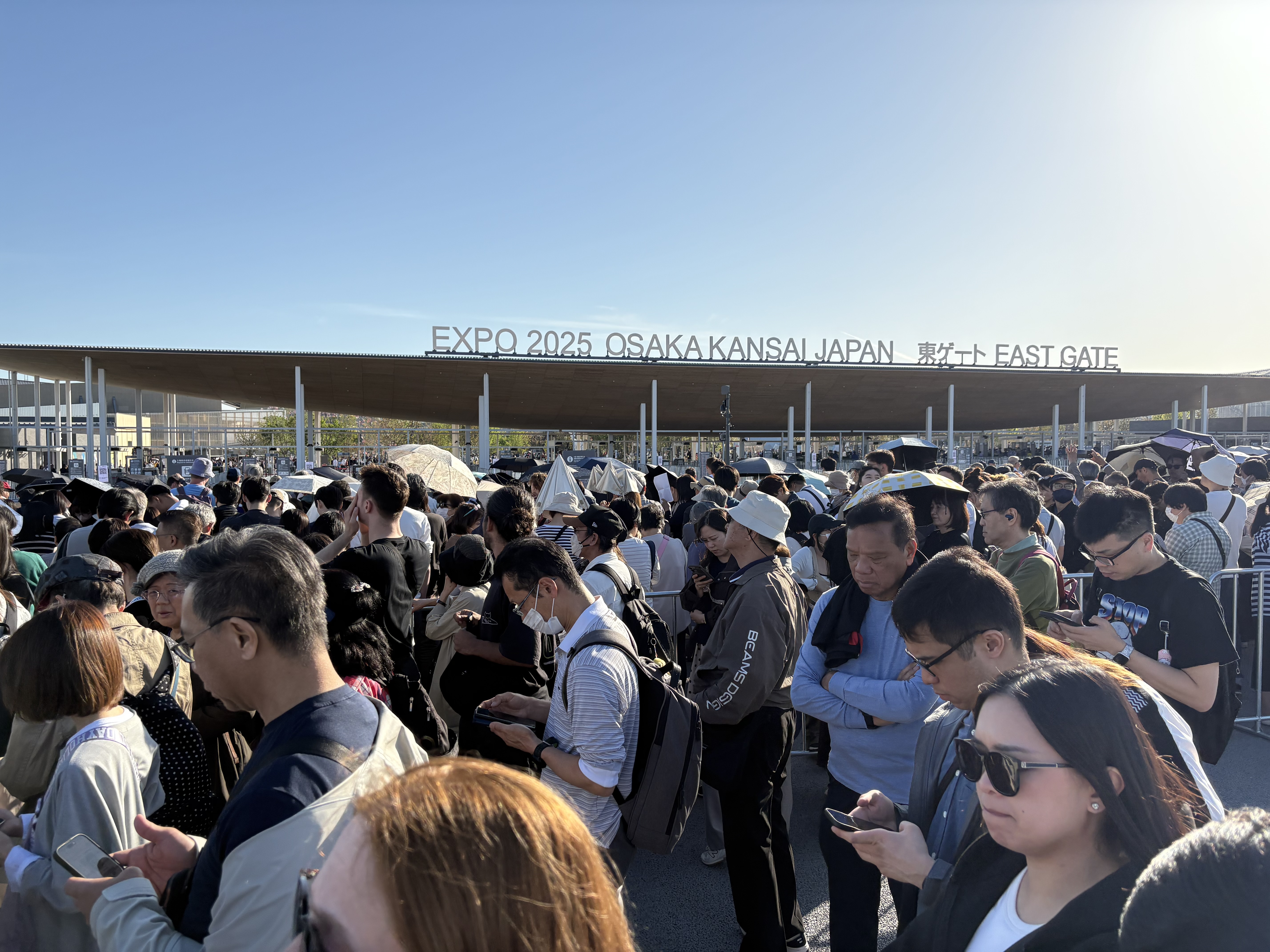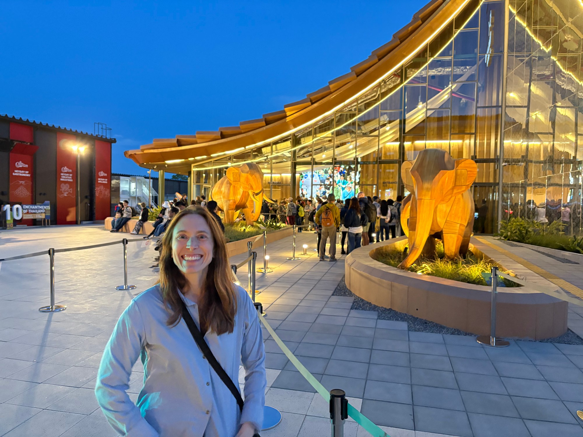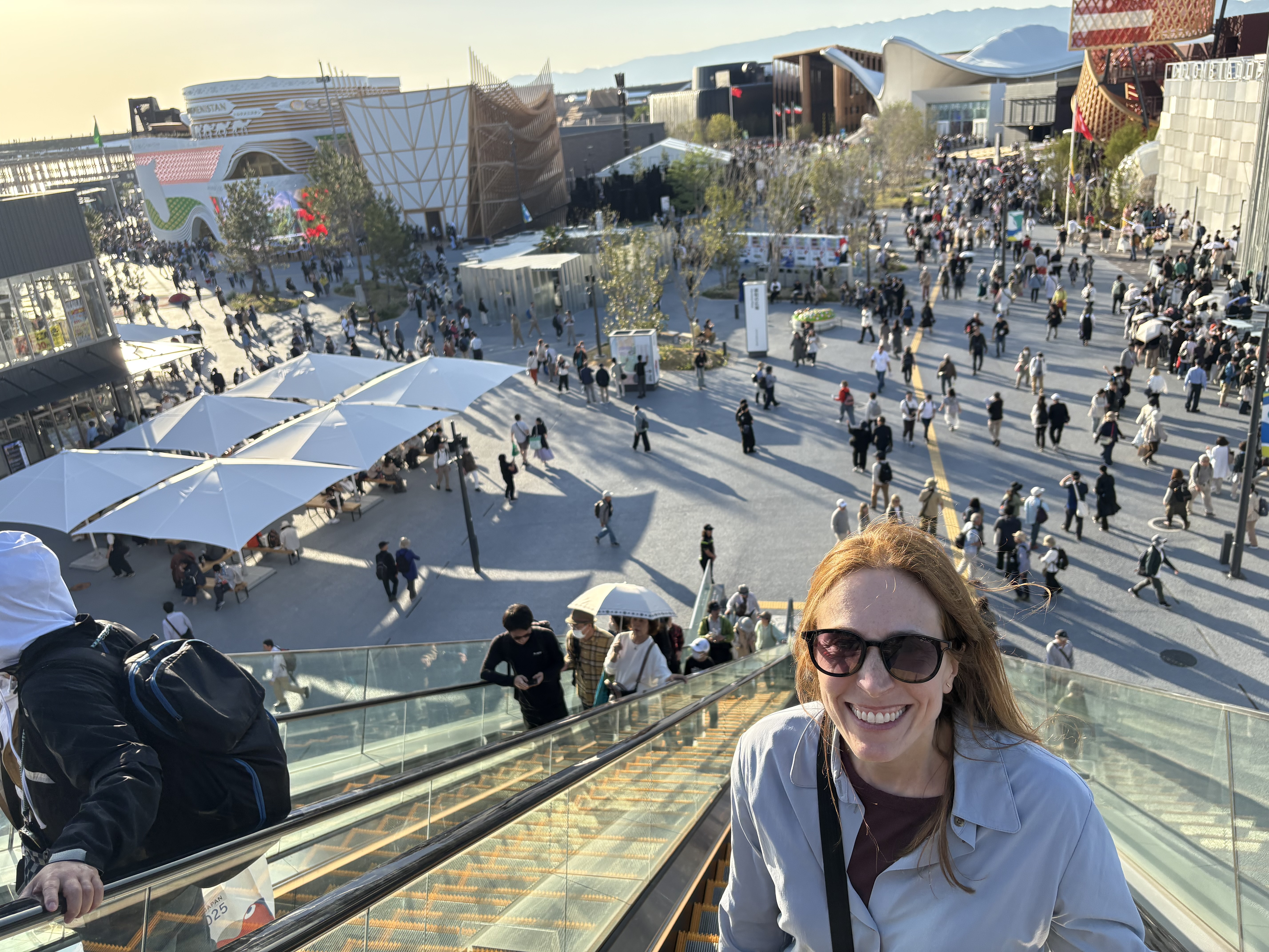 Above: arriving at the man-made Expo island and waiting for our 5 p.m. entry time.