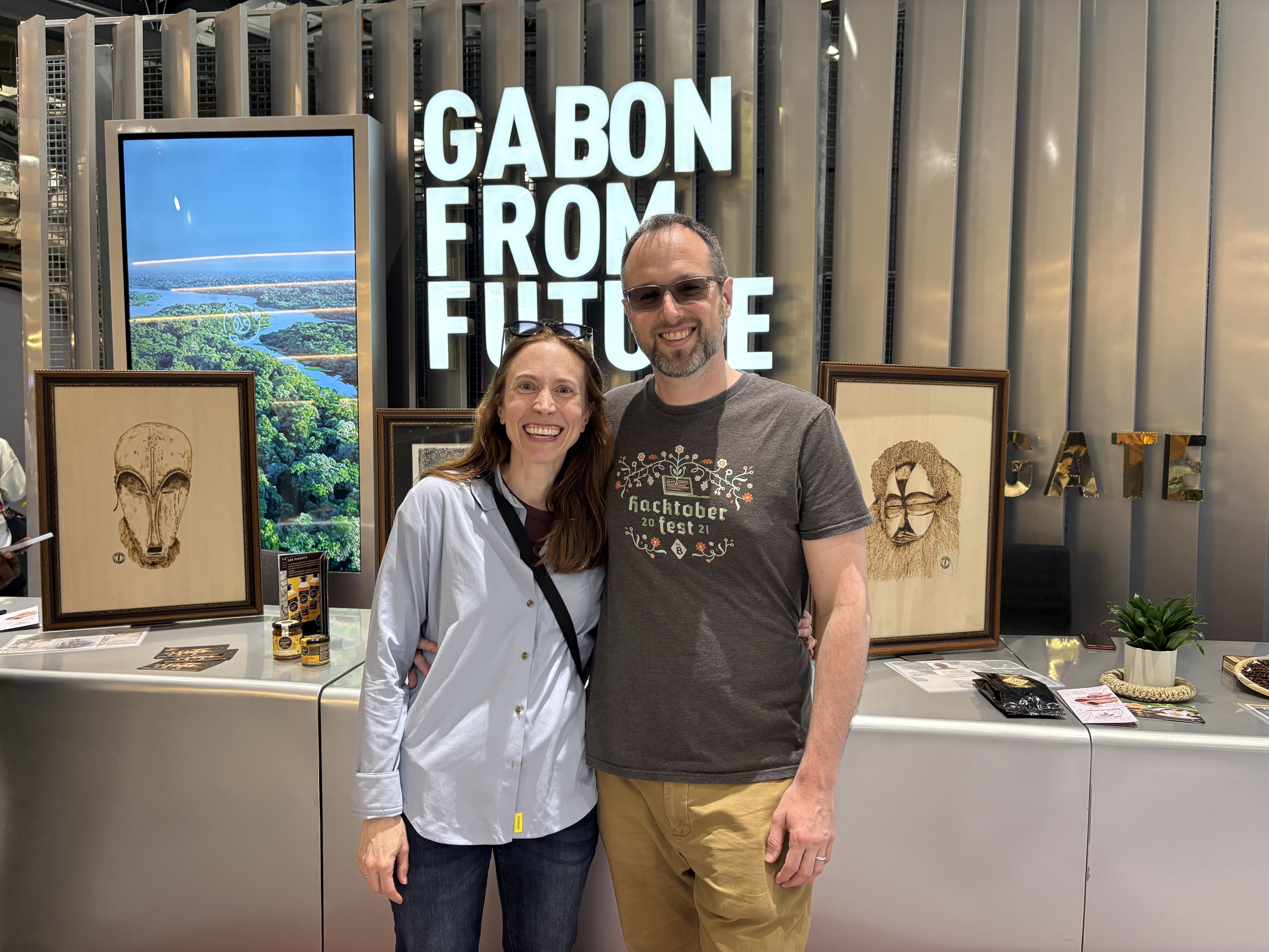 Our first stop was Gabon, in honor of my sister’s home country, her husband Cyrille, and my nephew Afane. Next door, inside the “Commons-C” building (one of several structures that house multiple countries under one roof), was a pavilion for our favorite European country!