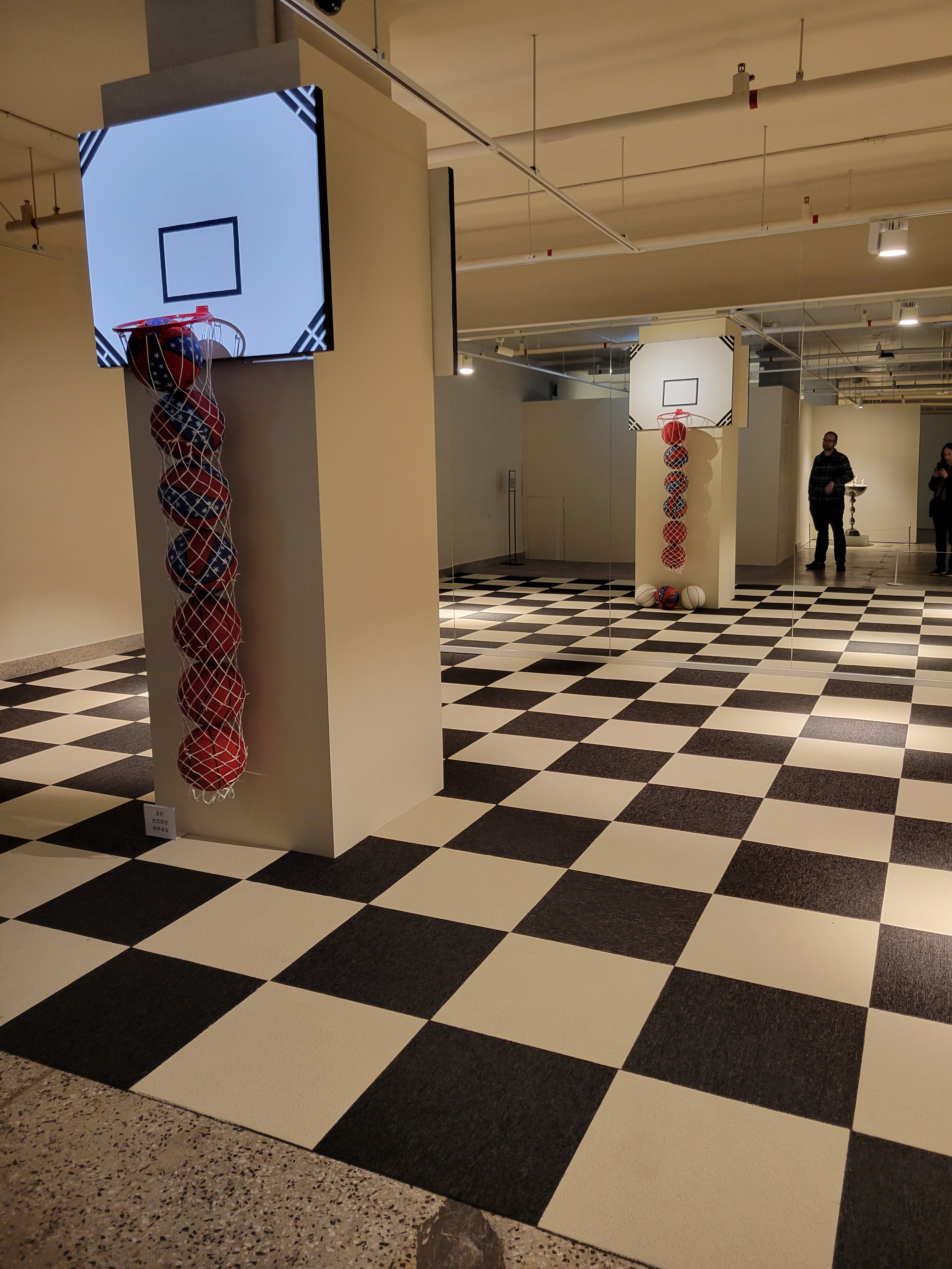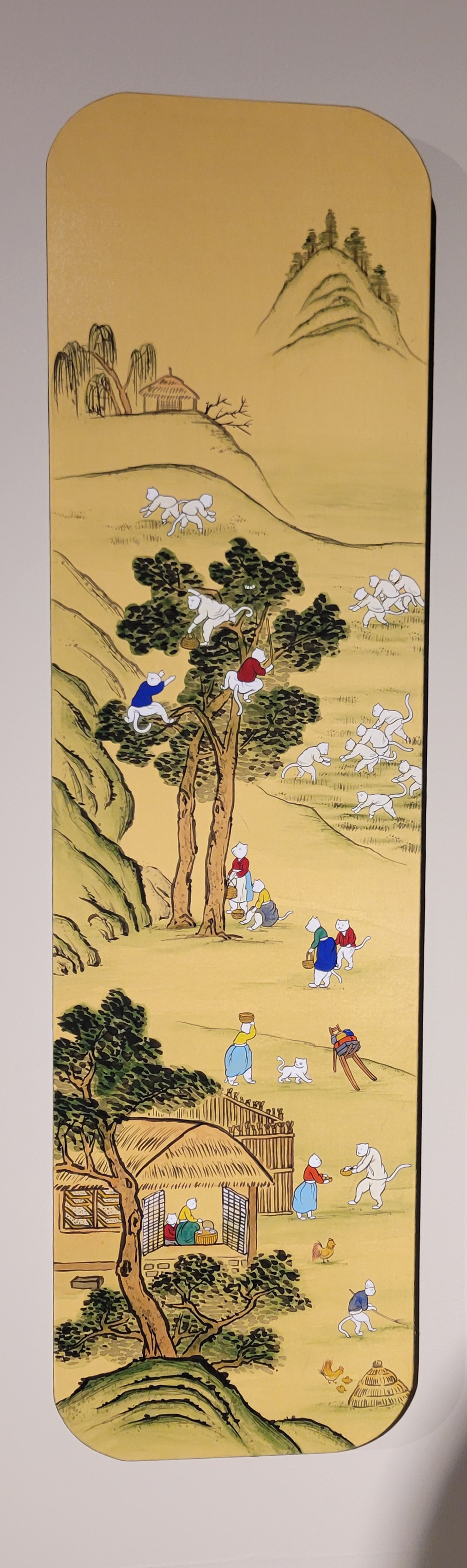 Here are a couple pictures of whimsical cat versions of Korean rural life and a contemporary art piece. The basketballs represent the US and Japan–the viewer is supposed to go up to the hoop and try to shoot a ball in only to realize that there’s no room for any balls because the US and Japan have taken up all the space. From the board: “This installation offers an indirect experience of the deep-seated sorrow and frustration of what was once ‘ours’ but was used and controlled by Japan and the United States.” Yikes.