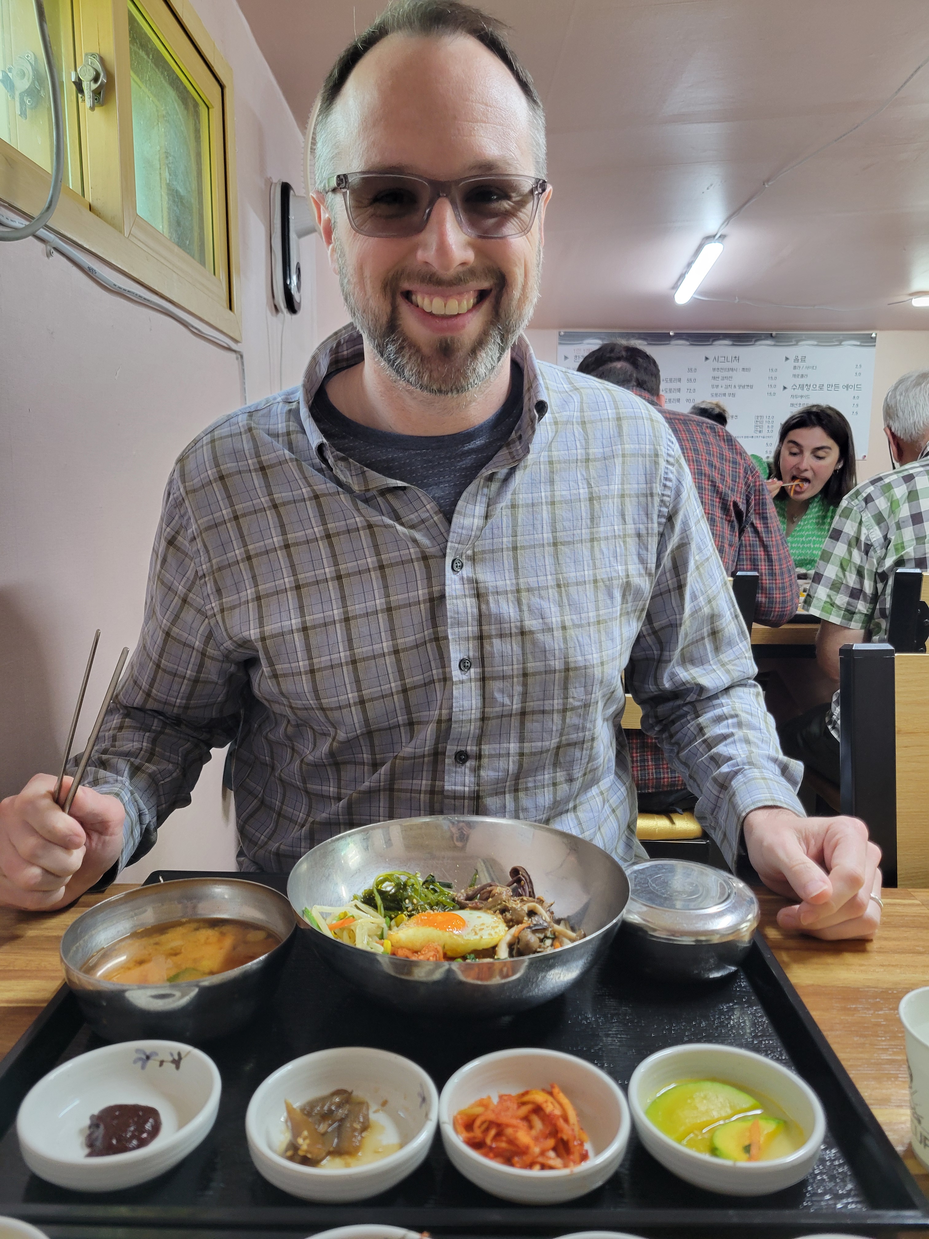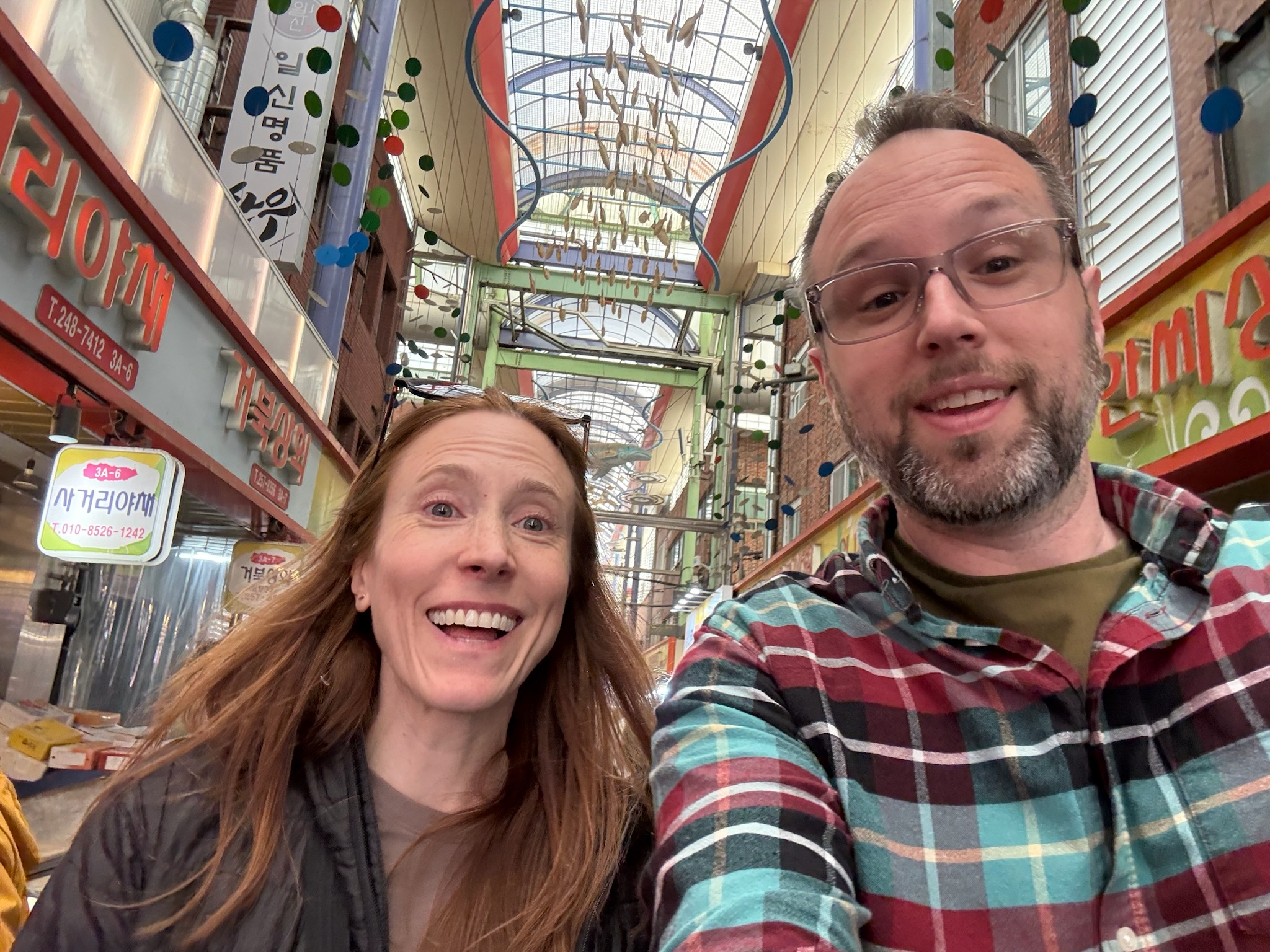 We knew nothing about the city coming in, to be honest, but we’re enjoying it. The flight over from Japan was uneventful and we found passport control and customs a lot less overwhelming than Tokyo–although it would be pretty hard to top the insanity of Tokyo. Navigation has been a little difficult for us. South Korea didn’t opt in to the google system, so there’s another navigation app and there’s just generally less information for tourists here. It’s funny because we say we hate being around other tourists, but it turns out that we really like all the infrastructure and tolerance that tourism develops.