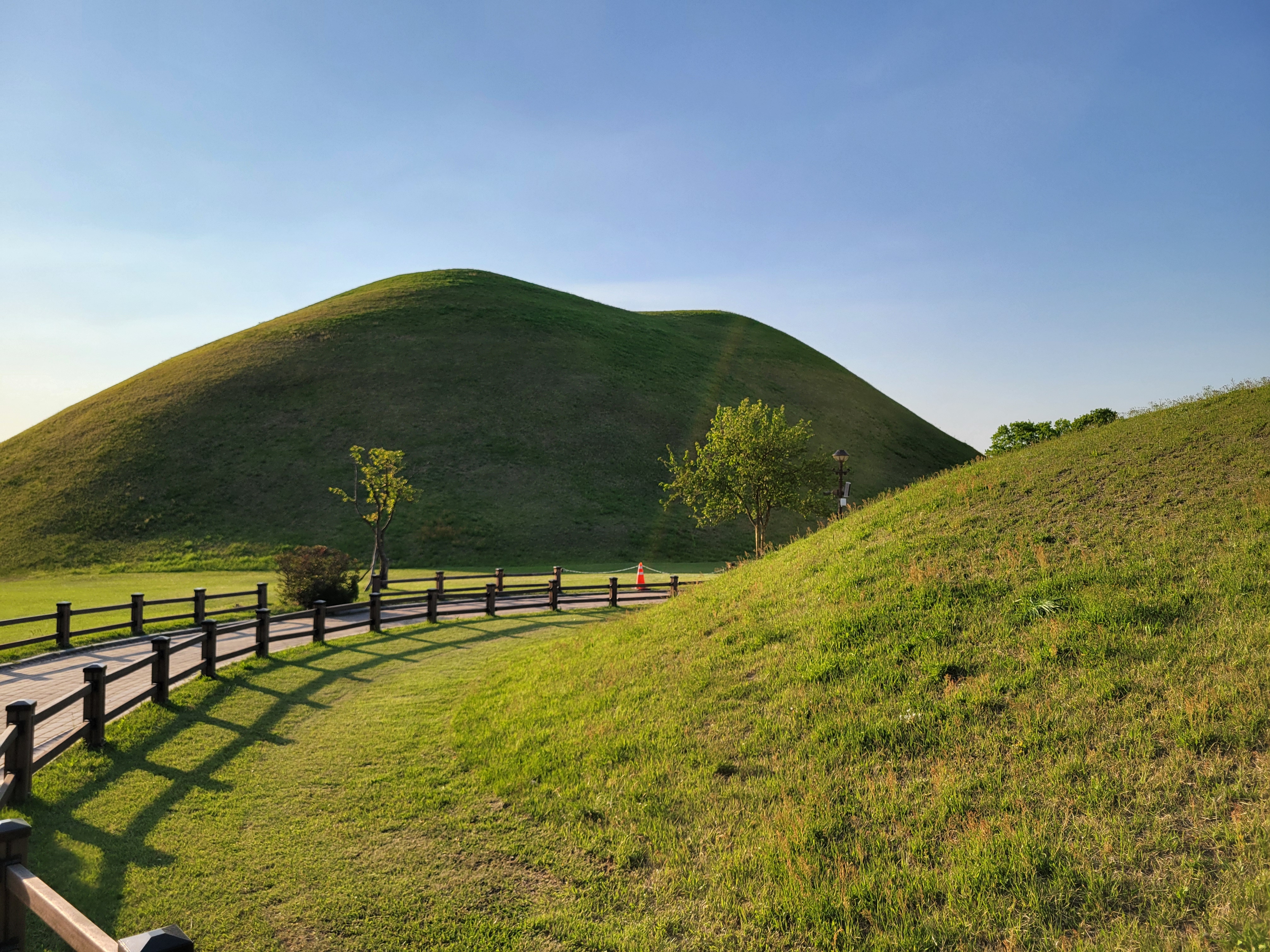 We saw some amazing tombs in the Daereungwon Tomb Complex–check out the hill tombs! There were so many of them. Obviously only the important people got buried in these, but it is a beautiful place to be buried.