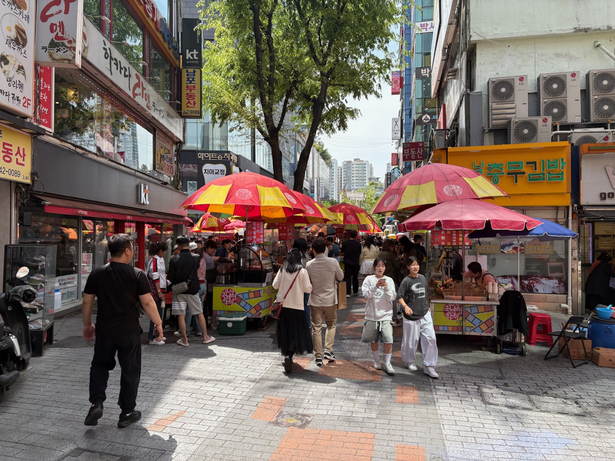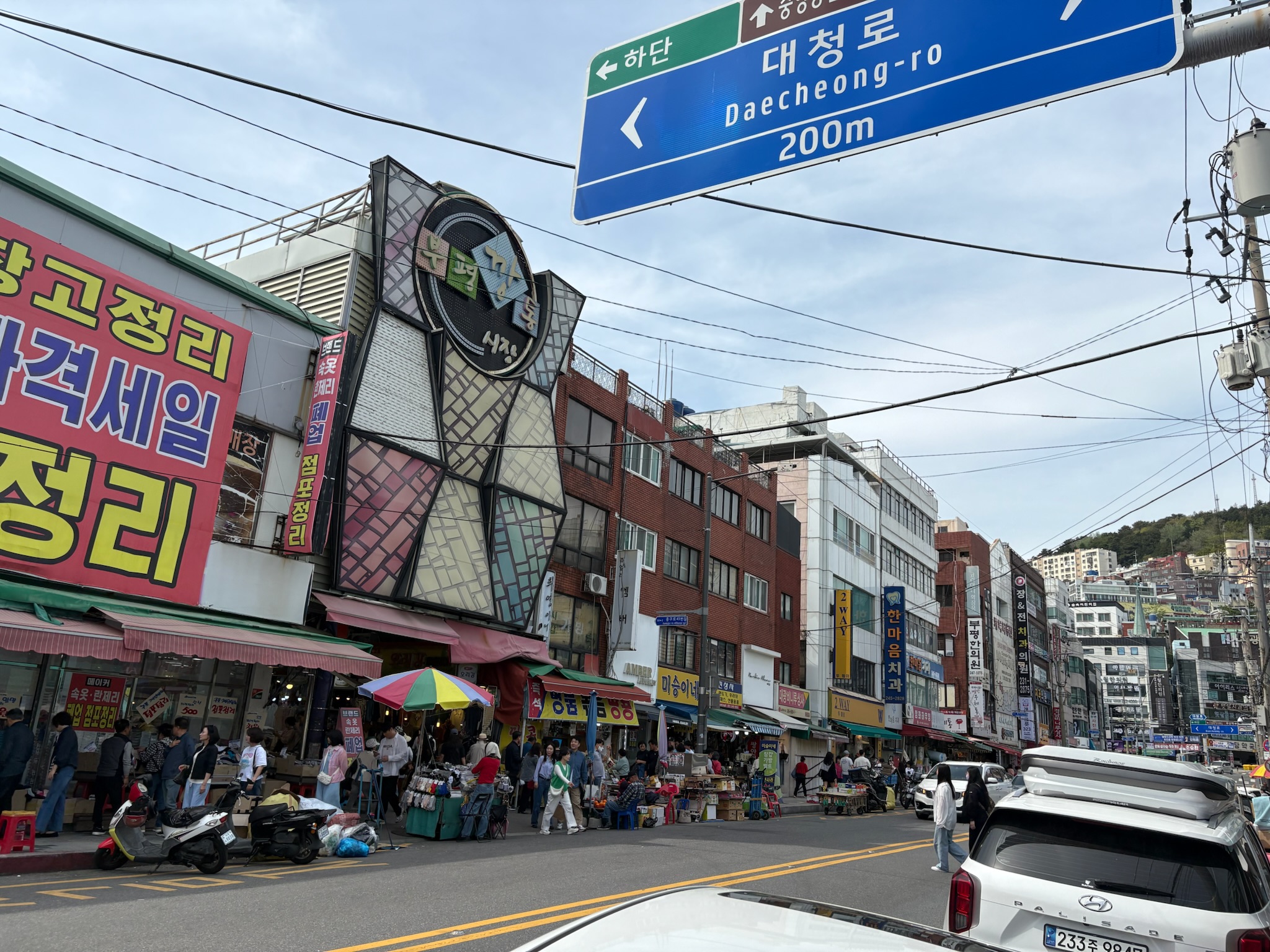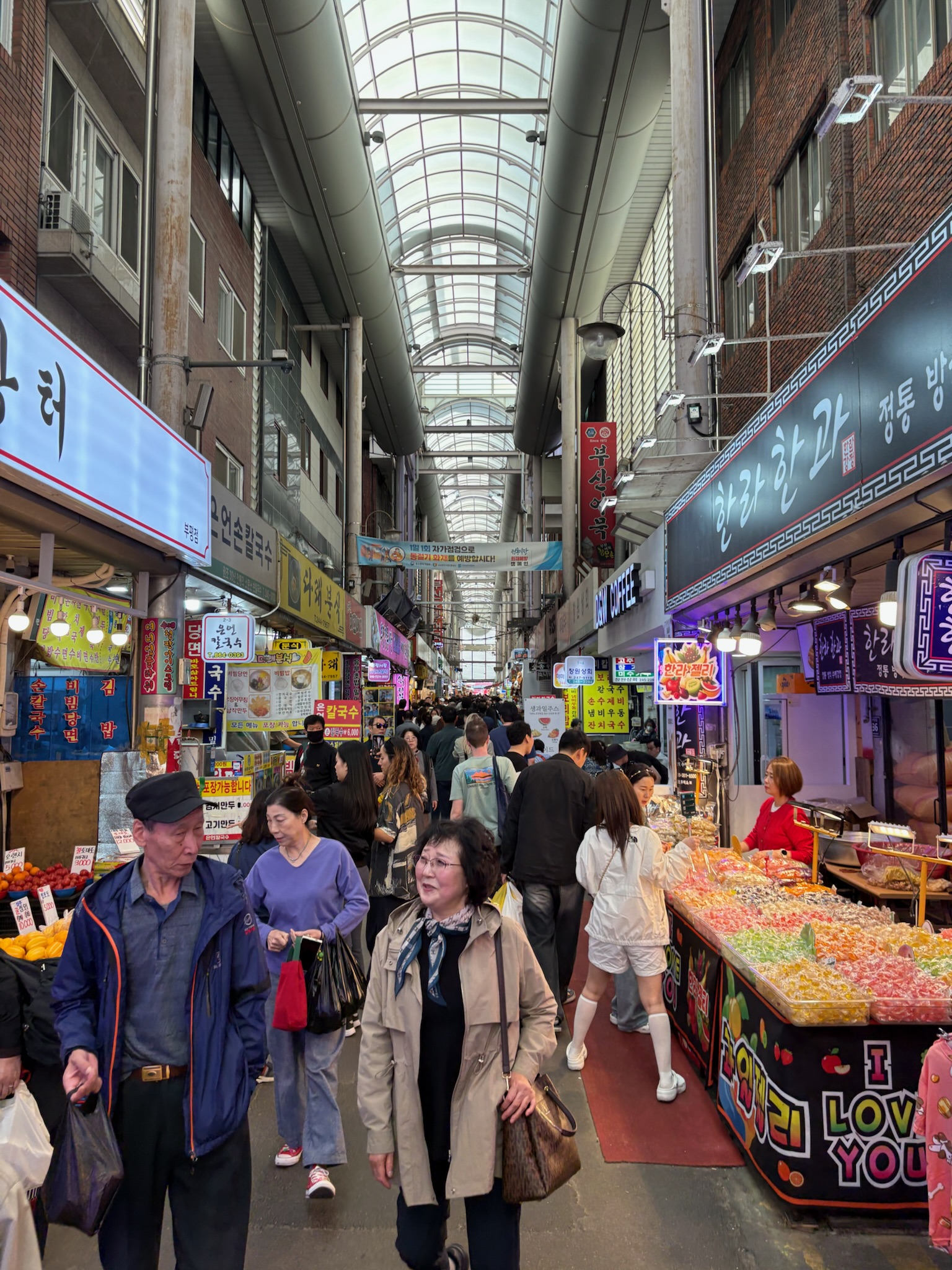 Finally some street views and pictures of the markets of Busan–these looked pretty similar to the ones in Japan–lots of dead sea creatures and sweet treats, but with fewer tourists and fewer major stores.