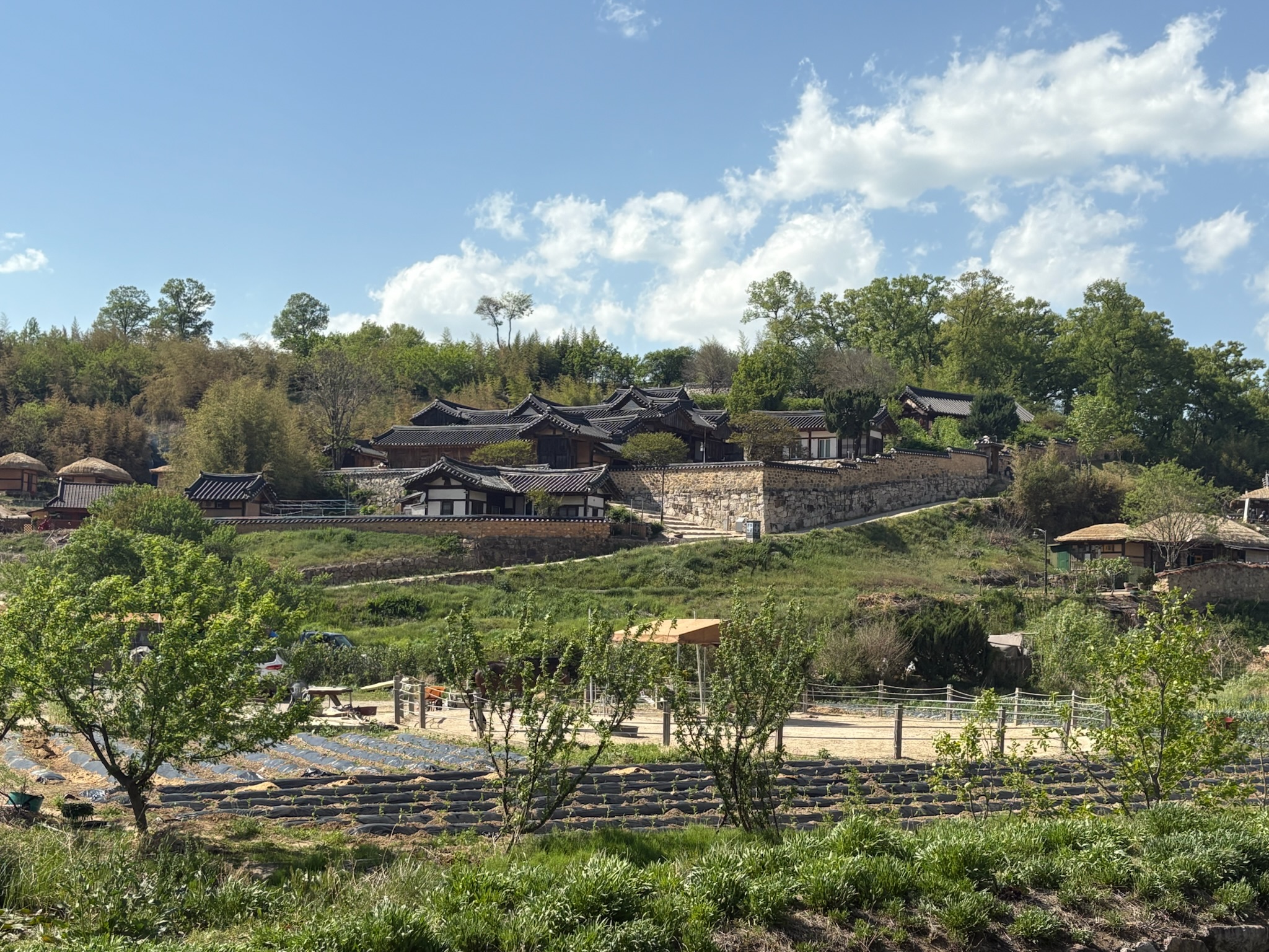 We also went to the Yangdong Village, a traditional village. It wasn’t super interesting historically to be honest–there were just buildings, no furniture or other belongings. It could just be me though; I like to imagine ancient people’s lives and it wasn’t very easy from what was preserved. It was a beautiful day–10 out of 10, would recommend for Japanese/Korean weather in April–and we had a lovely countryside walk and a really delicious meal. One really cool thing–traditionally the Koreans used a hypocaust system to heat their houses. Basically, they warmed the floors to heat the rooms. I always wondered why there were no fireplaces in the houses and why they slept on the floor. I guess I just thought they were hardier than Europeans, lol. In front of the house below, the stack of bricks with the holes is a chimney to release the smoke from the fire used to heat the floors.