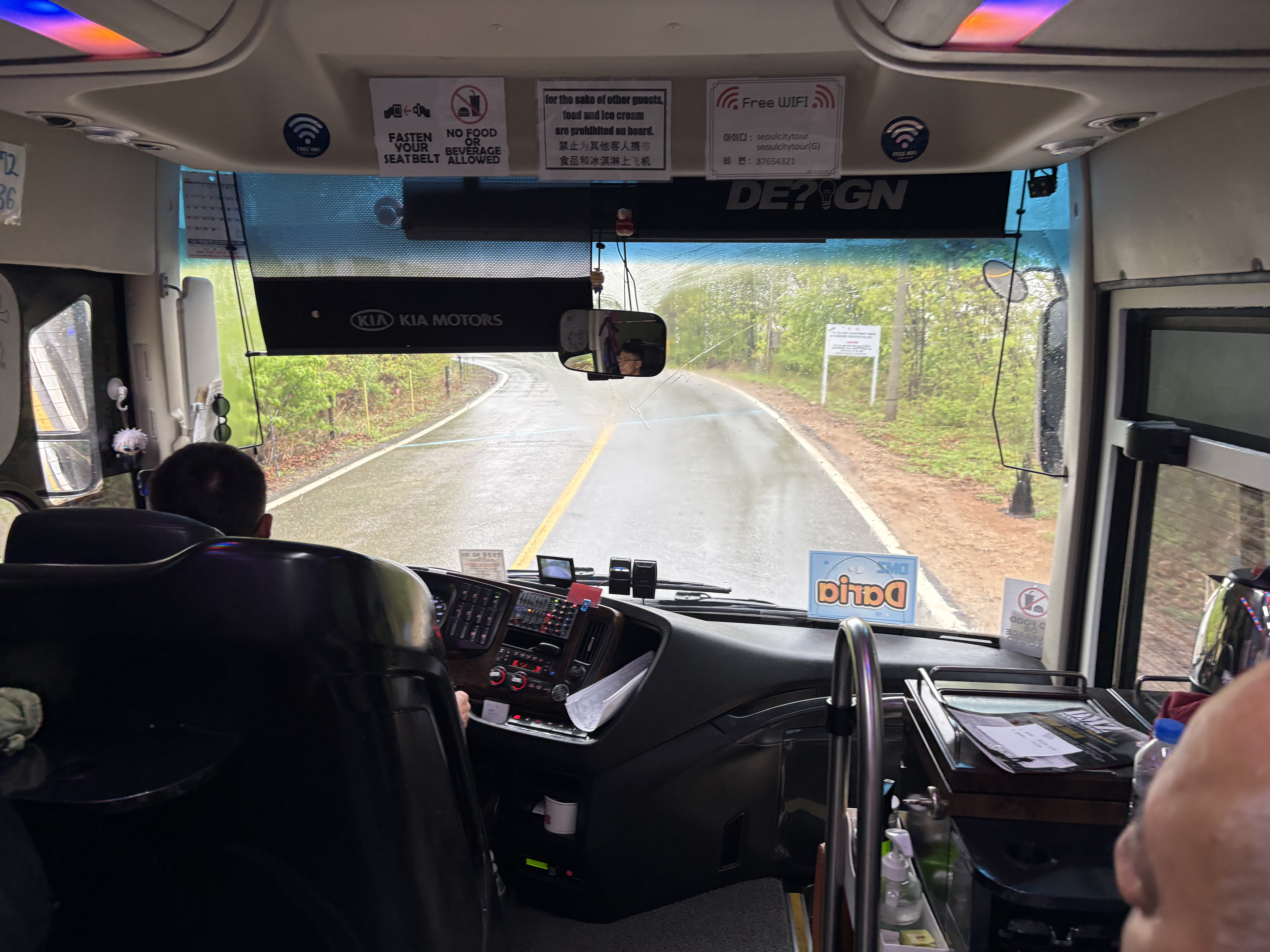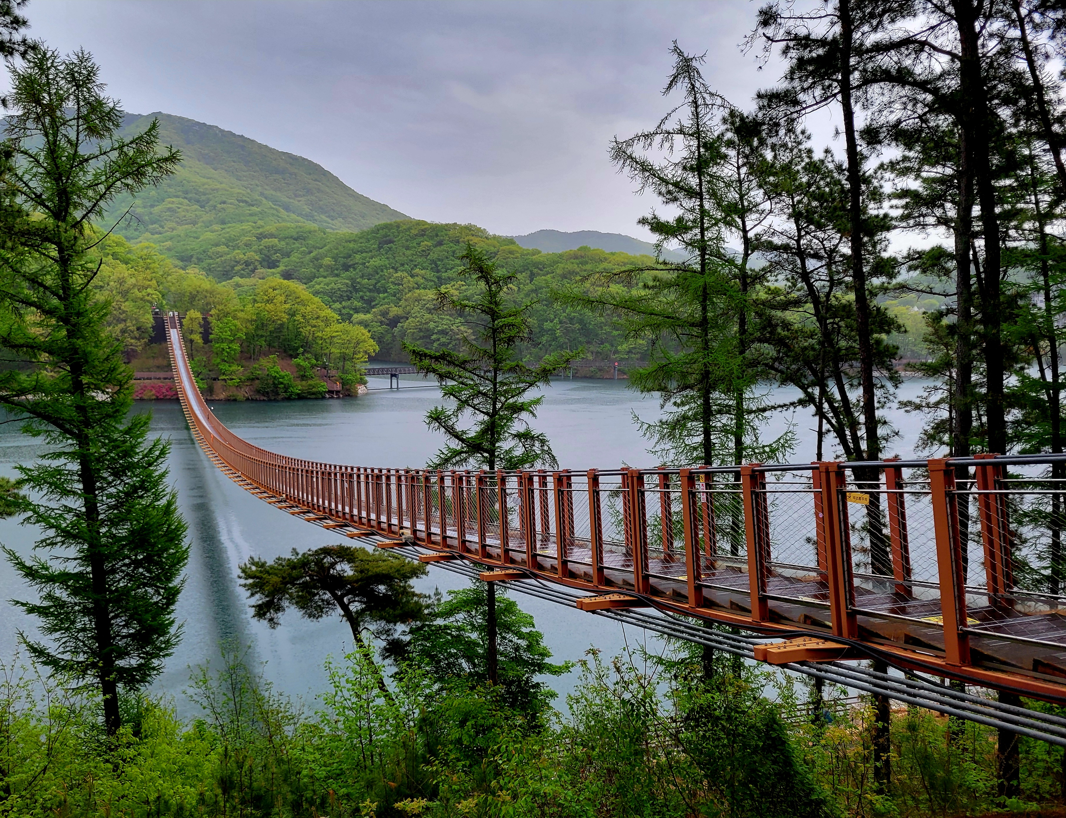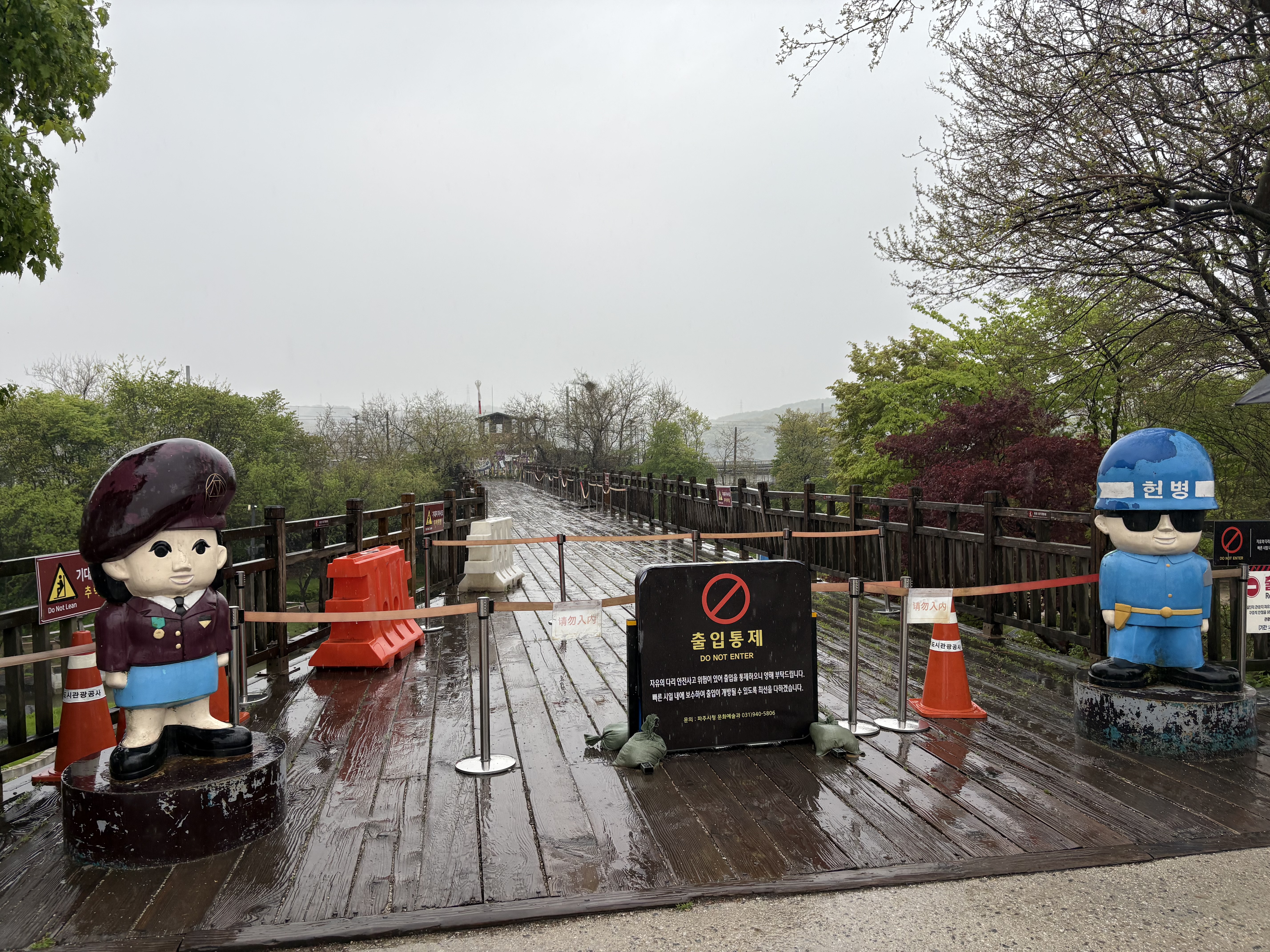 Before reaching the DMZ itself, our tour made a stop at the Lake Majang Suspension Bridge. It might have been more enjoyable if not for the crowds (it’s a common detour on the way to the DMZ) and the rain. Even so, it still felt like a peaceful brush with nature, even with the odds stacked against it.
