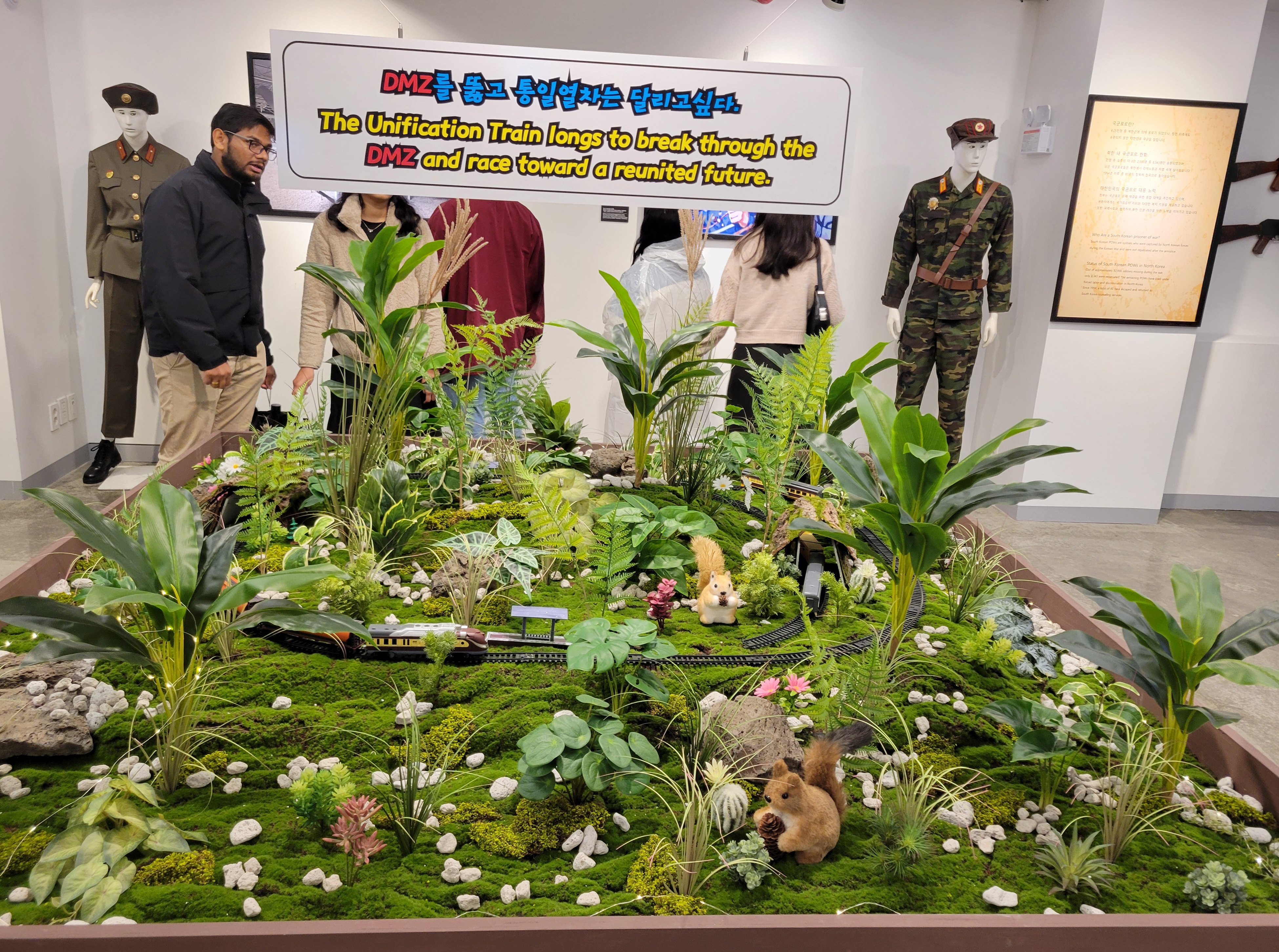 After crossing a security checkpoint – passports required, no photography allowed – we arrived at Imjingak Park. The park is a symbolic site dedicated to the hope of reunification between North and South Korea. That hope is still present in its messaging, but after 70+ years of separation since the Korean War began in 1950, their relationship have regressed.