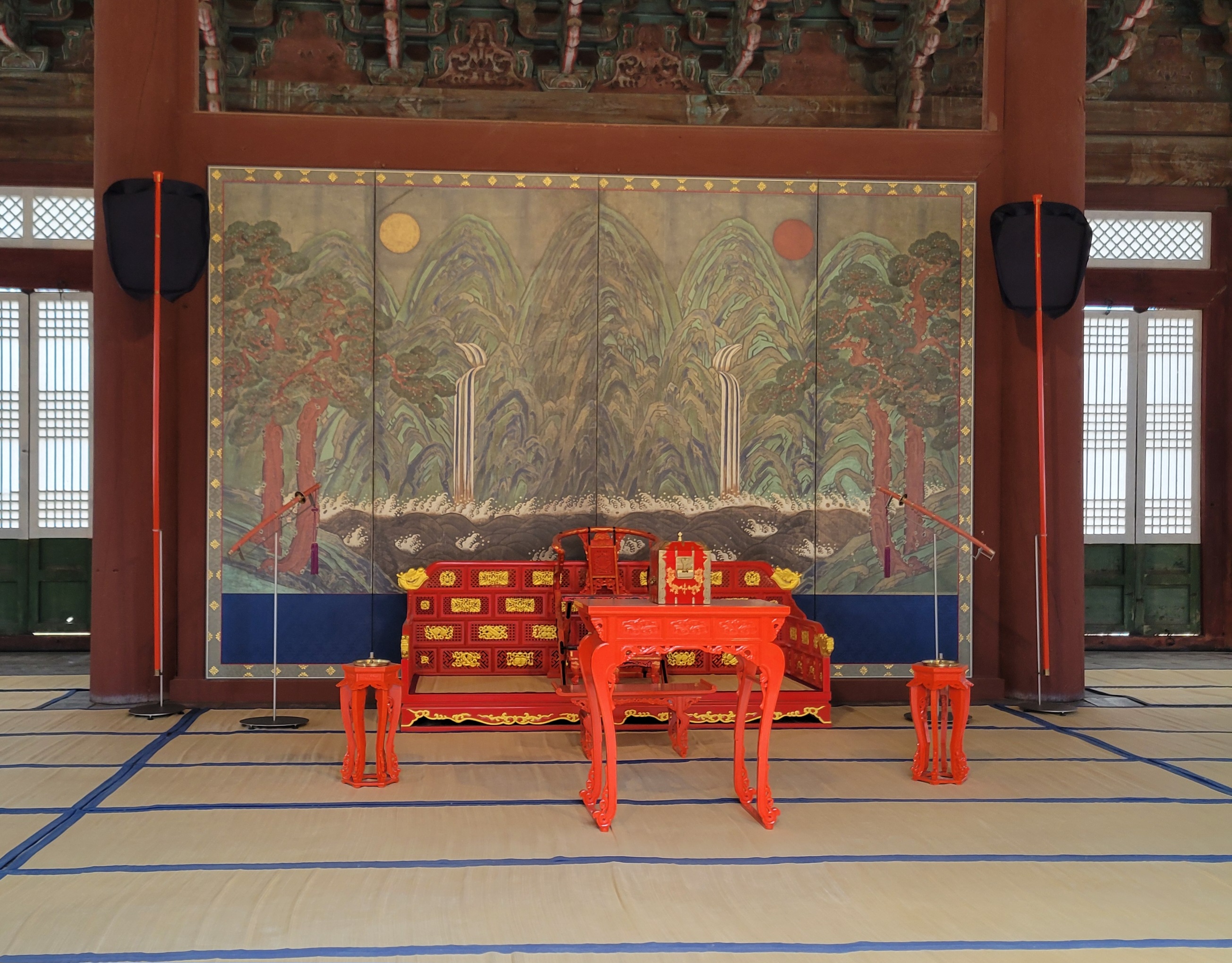 On Friday, our first full day in Seoul, we got an early start, beating the crowds to the Deoksugung Palace. All royal buildings in Korea are painted in the same traditional red, green, and gold color scheme. You might recognize the style from earlier posts.