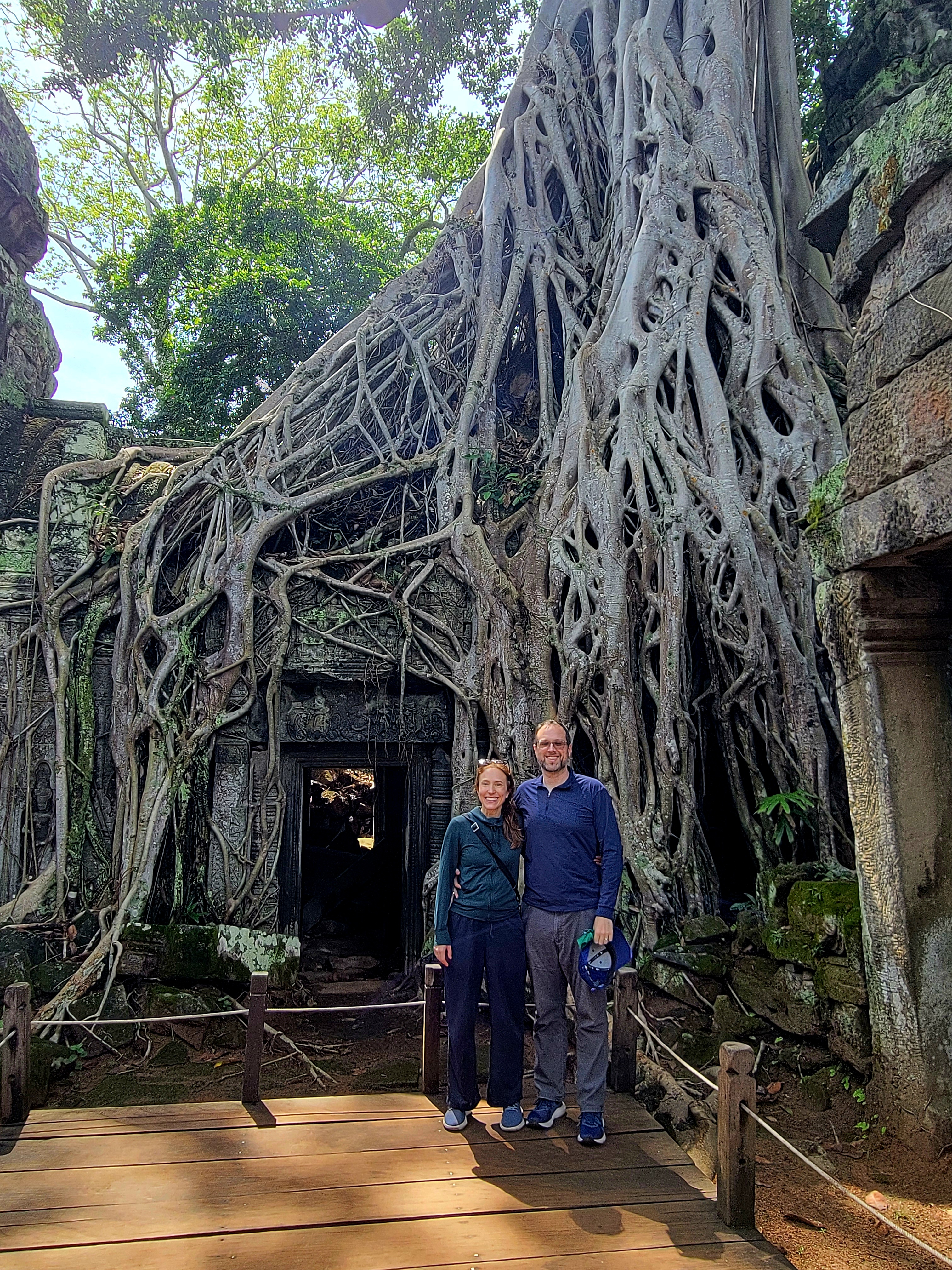 The most famous temple in Siem Reap is Angkor Wat. It’s on the Cambodian national flag and is a UNESCO World Heritage site. We went early to see the sunrise and that was certainly cool, but if you can handle the heat, no need to get up at 4 am because it’s pretty great at any hour. We visited three other temples around Angkor Wat and I’ll label them as I post the pictures. Most were built around mid-late 12th to early 13th century CE by kings that wanted to show their power. Angkor Wat was originally a Hindu temple to Vishnu, but is now a Buddhist temple.