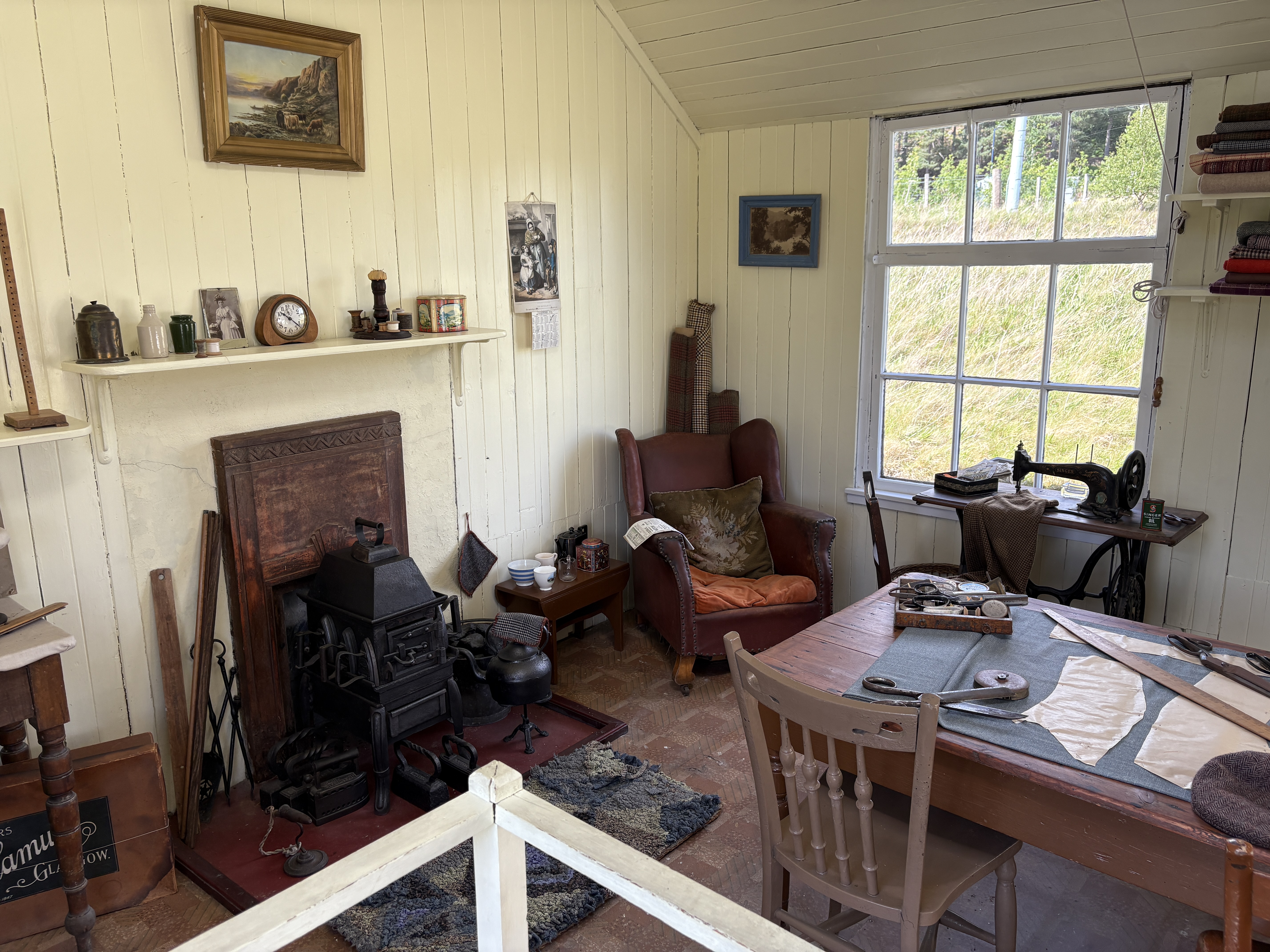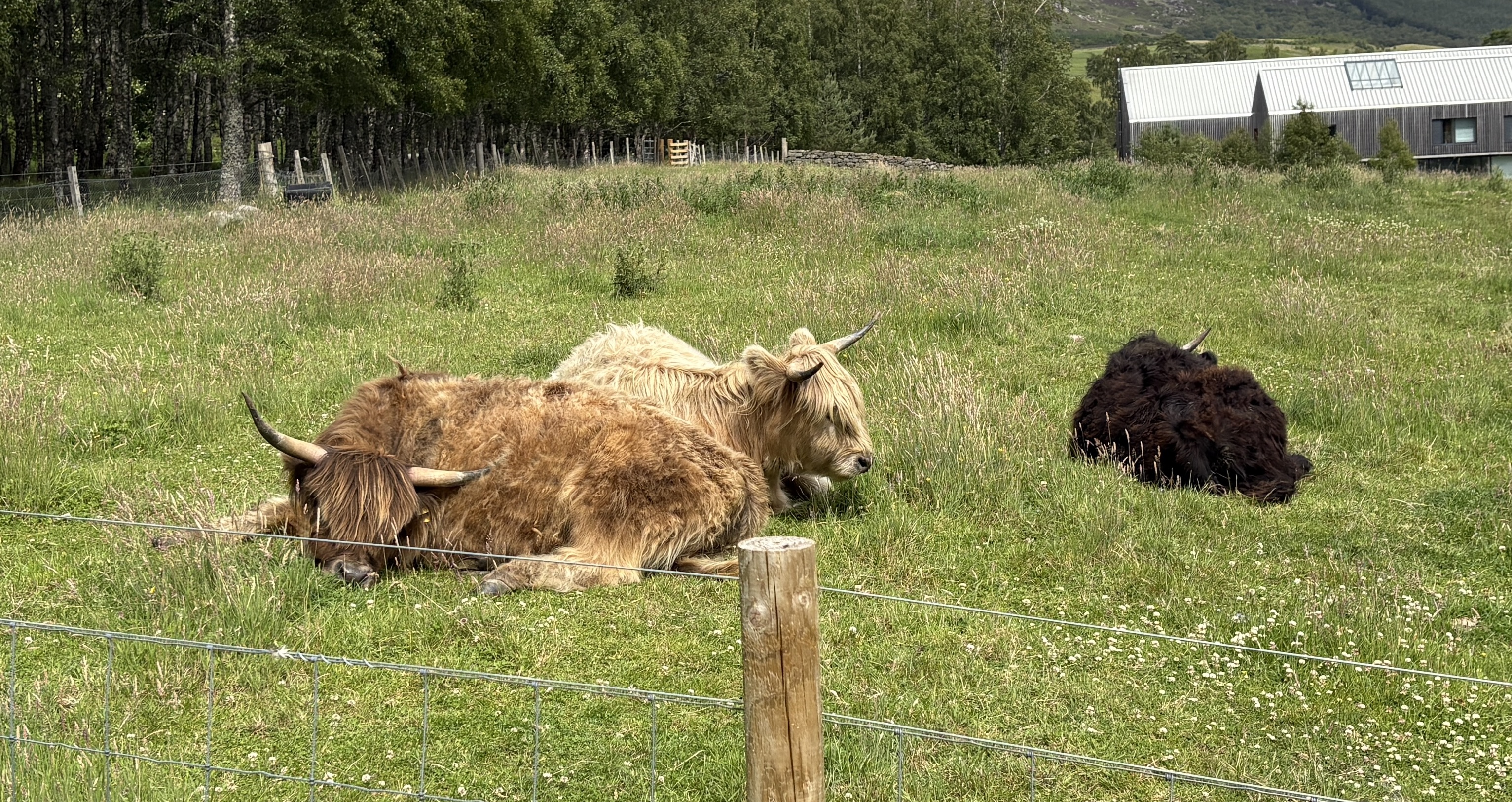 Next we stopped for a stroll and lunch in Pitlochry, and then continued on to the Highland Folk Museum. Kelly and I have visited a lot of open-air museums in Europe. This one started a little underwelcoming, but as the signage and variety of eras increased, it turned into a delight! The shots in the bottom row are from a reconstructed village representing the 1700s, followed by some Highland cows.