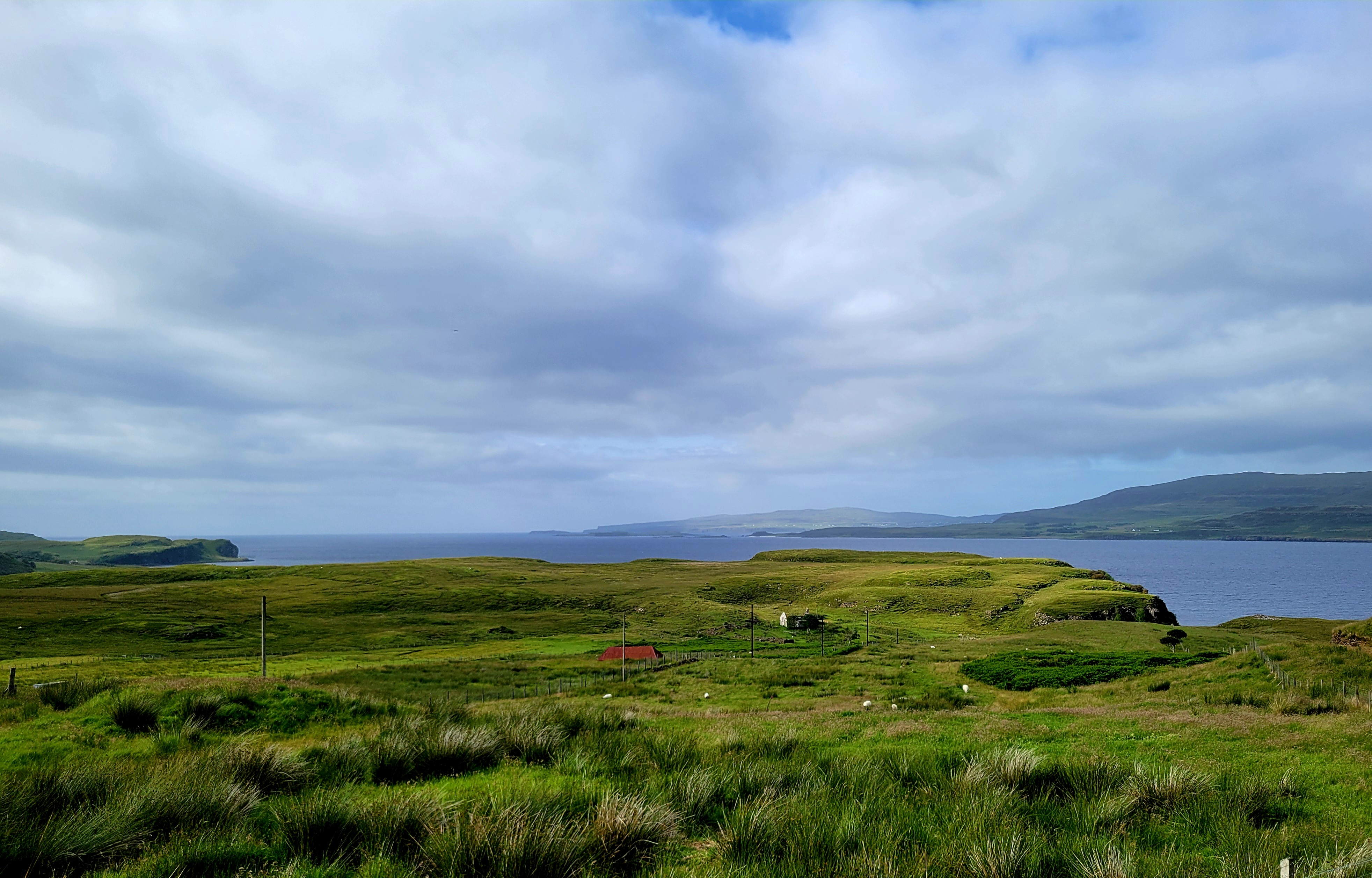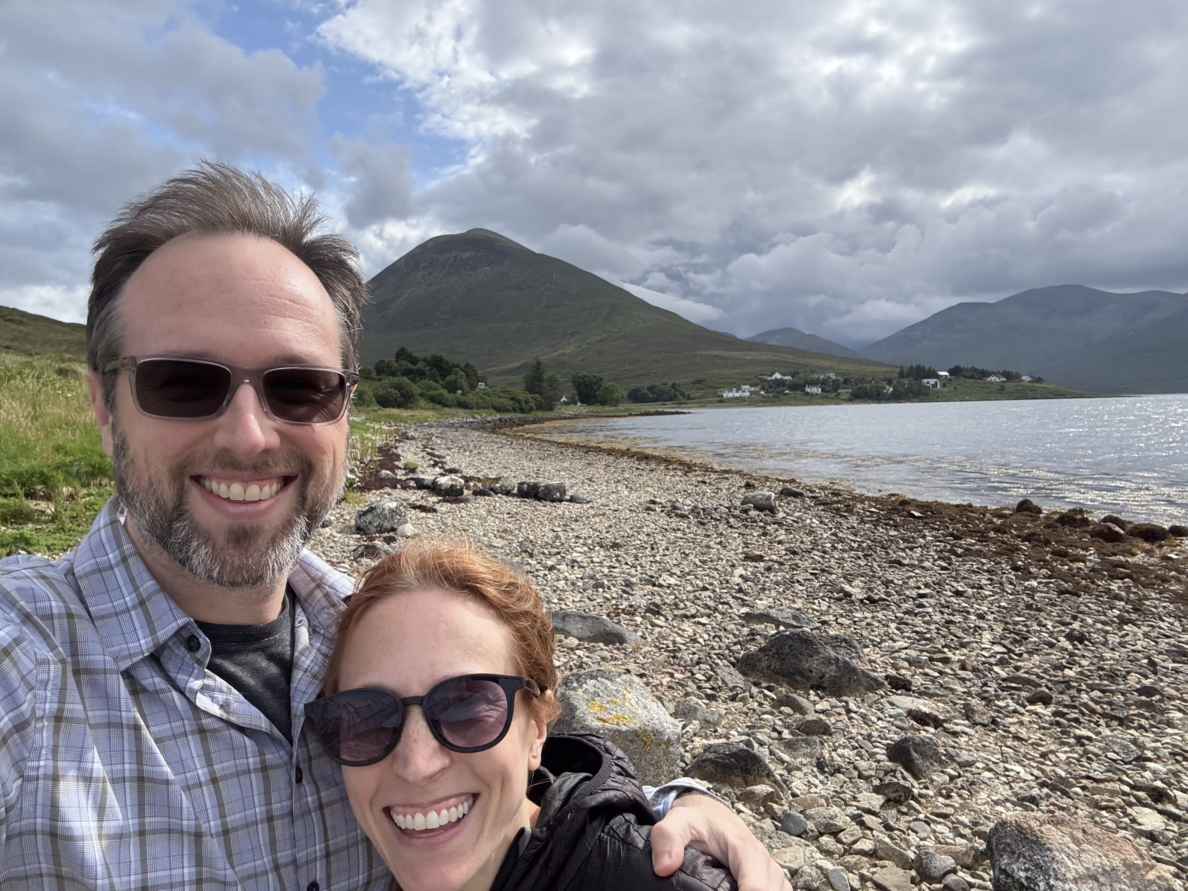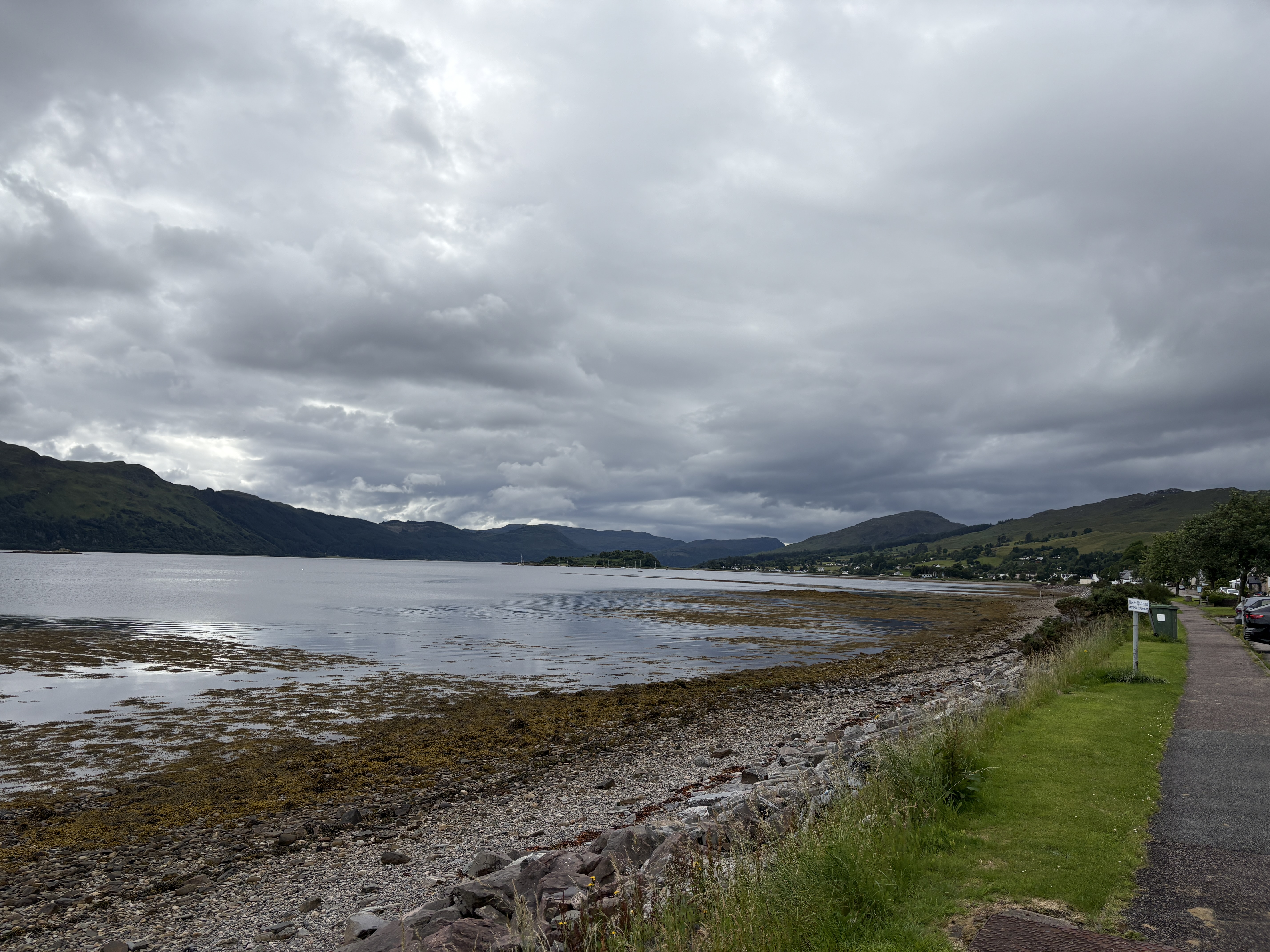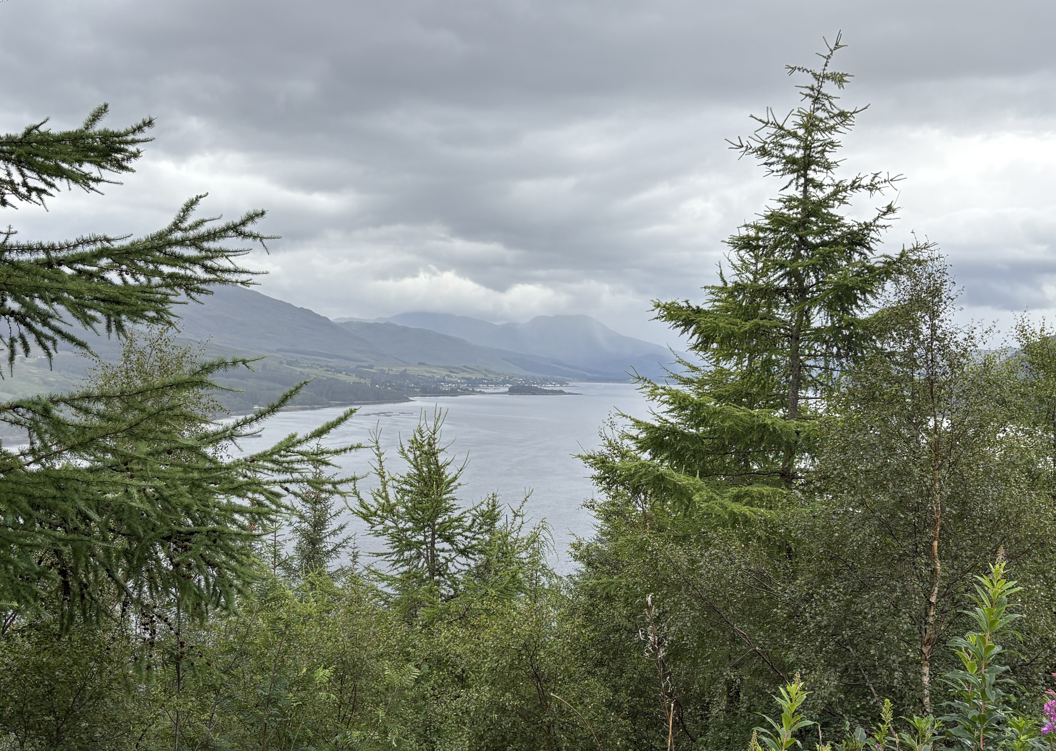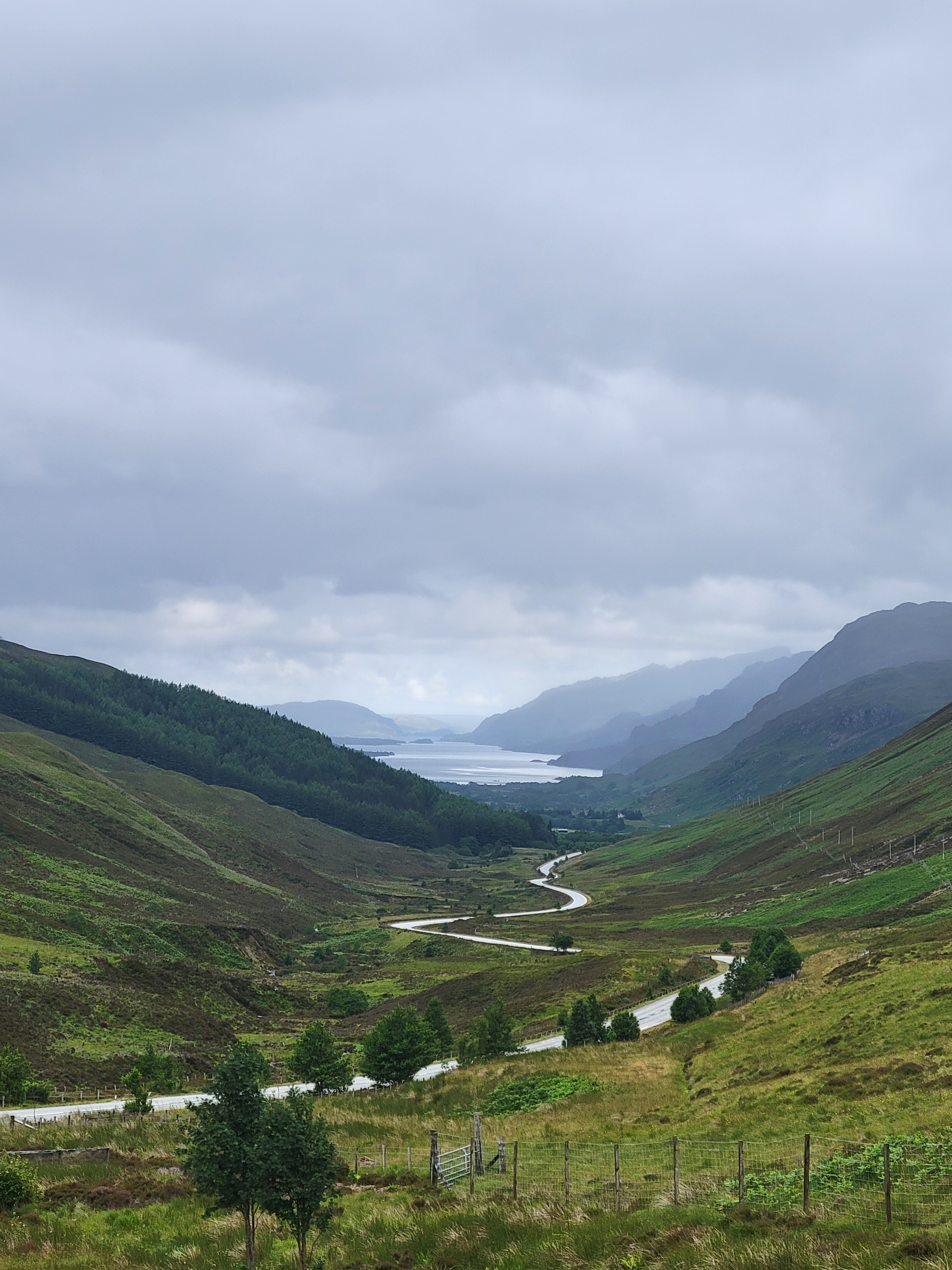 From there, we made our way across Scotland to the west side of the Highlands. We stopped for lunch in the town of Lochcarron, which sits right along the water. On one side, you can walk beside Loch Carron; on the other, the town looks inward toward the lake. After lunch, we continued on and snapped another photo of the town from across the loch (last photo below).