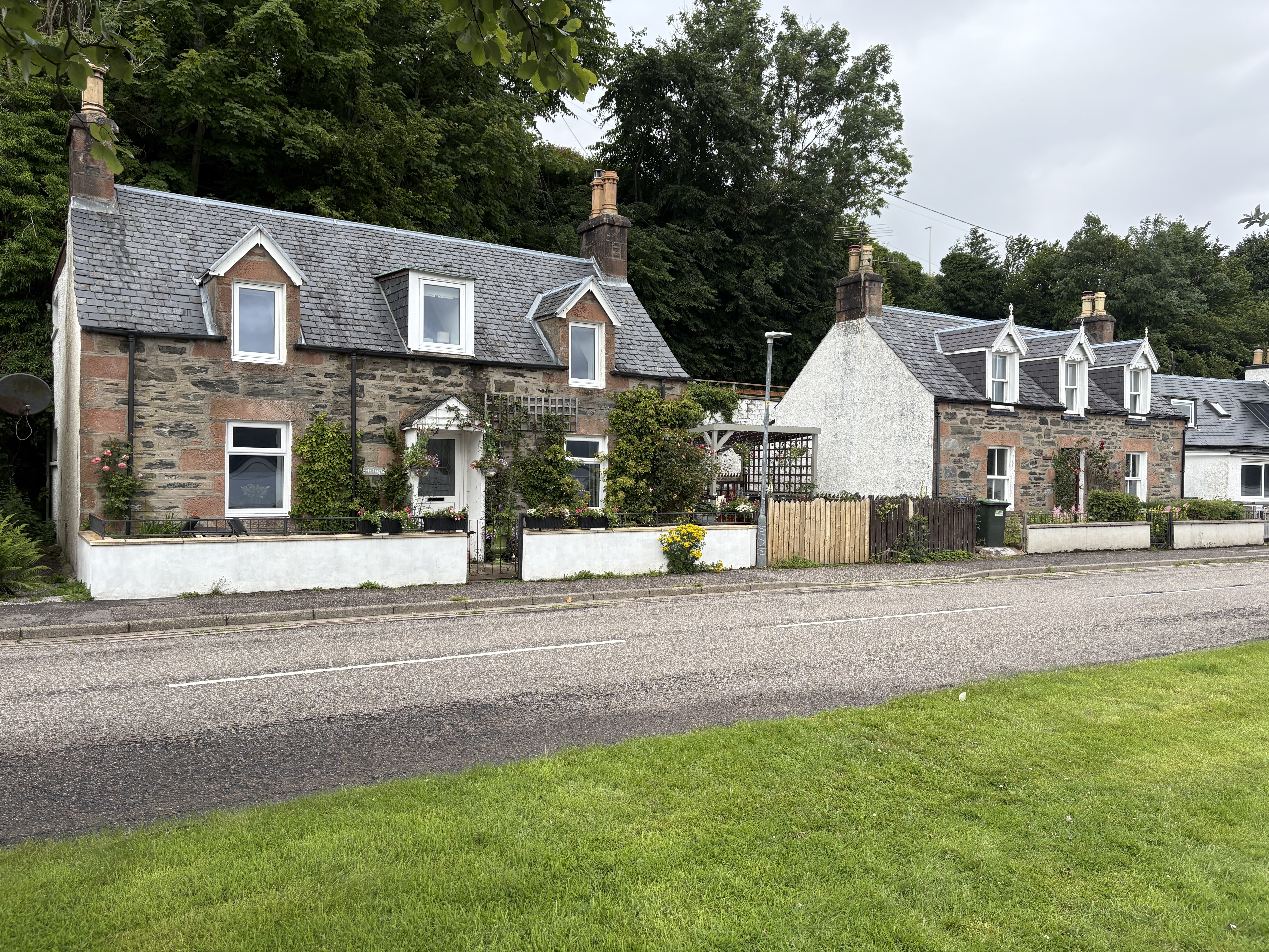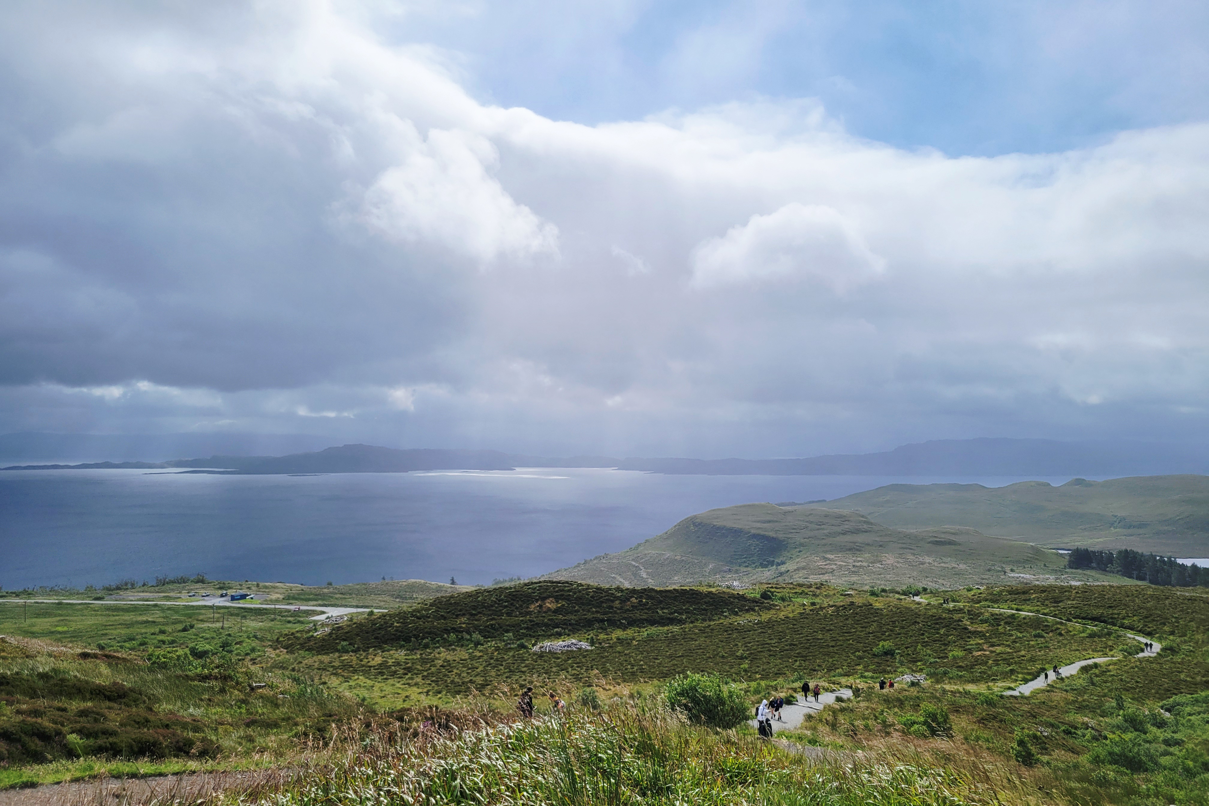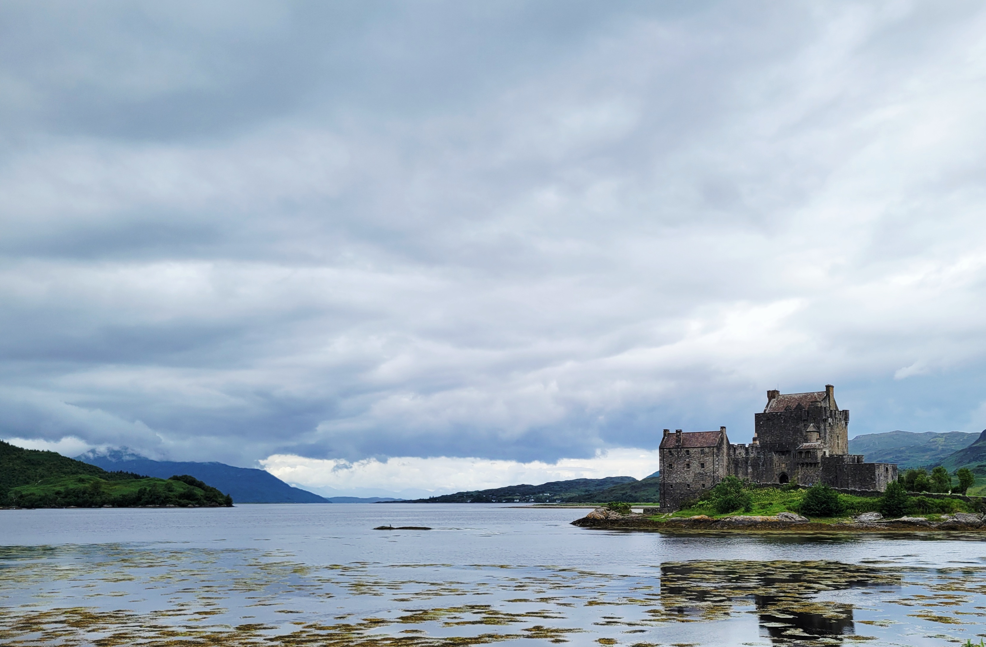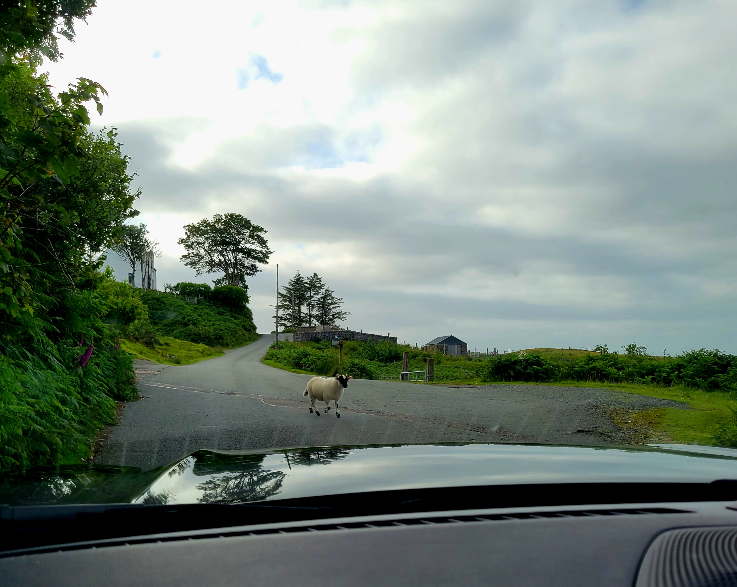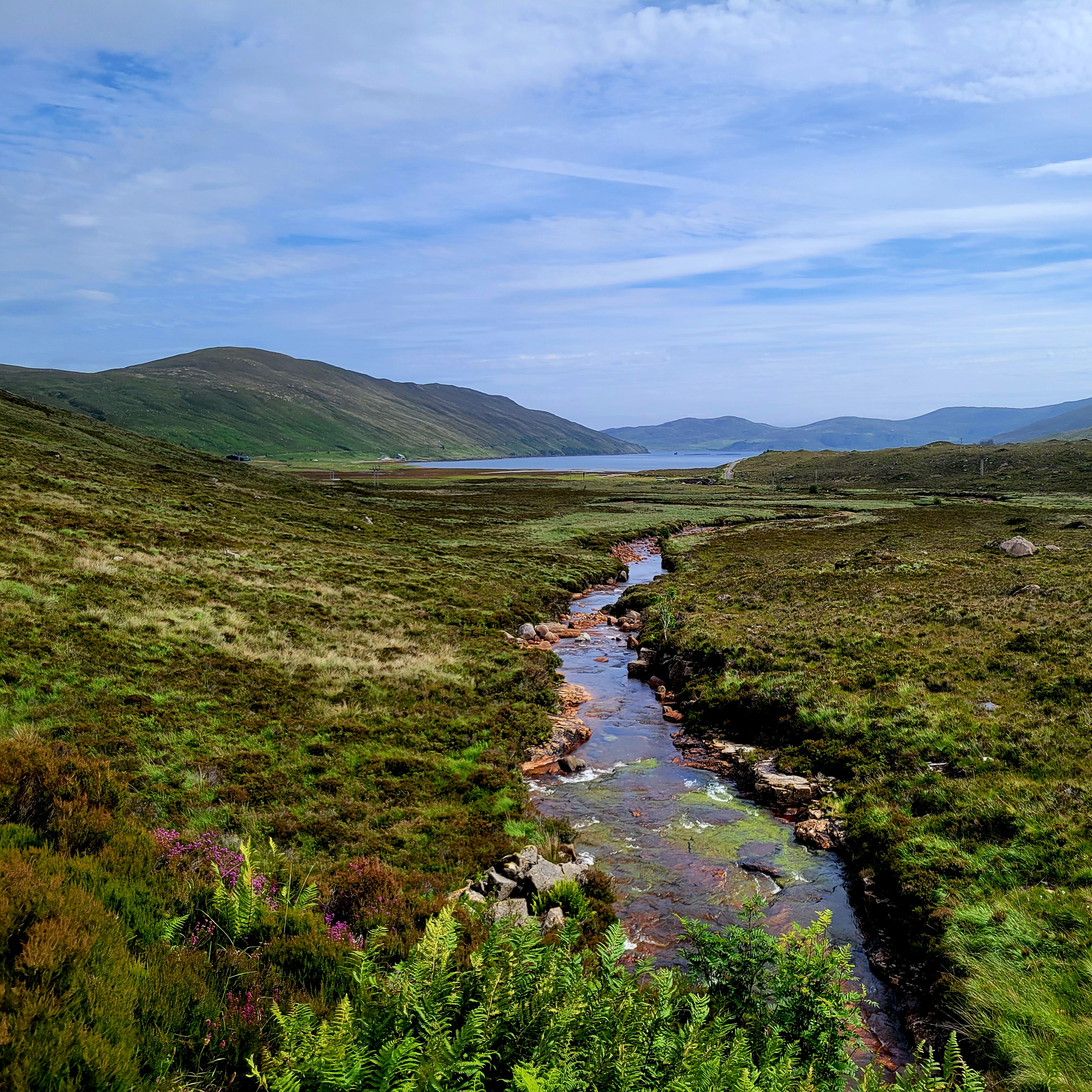 From there, we made our way across Scotland to the west side of the Highlands. We stopped for lunch in the town of Lochcarron, which sits right along the water. On one side, you can walk beside Loch Carron; on the other, the town looks inward toward the lake. After lunch, we continued on and snapped another photo of the town from across the loch (last photo below).