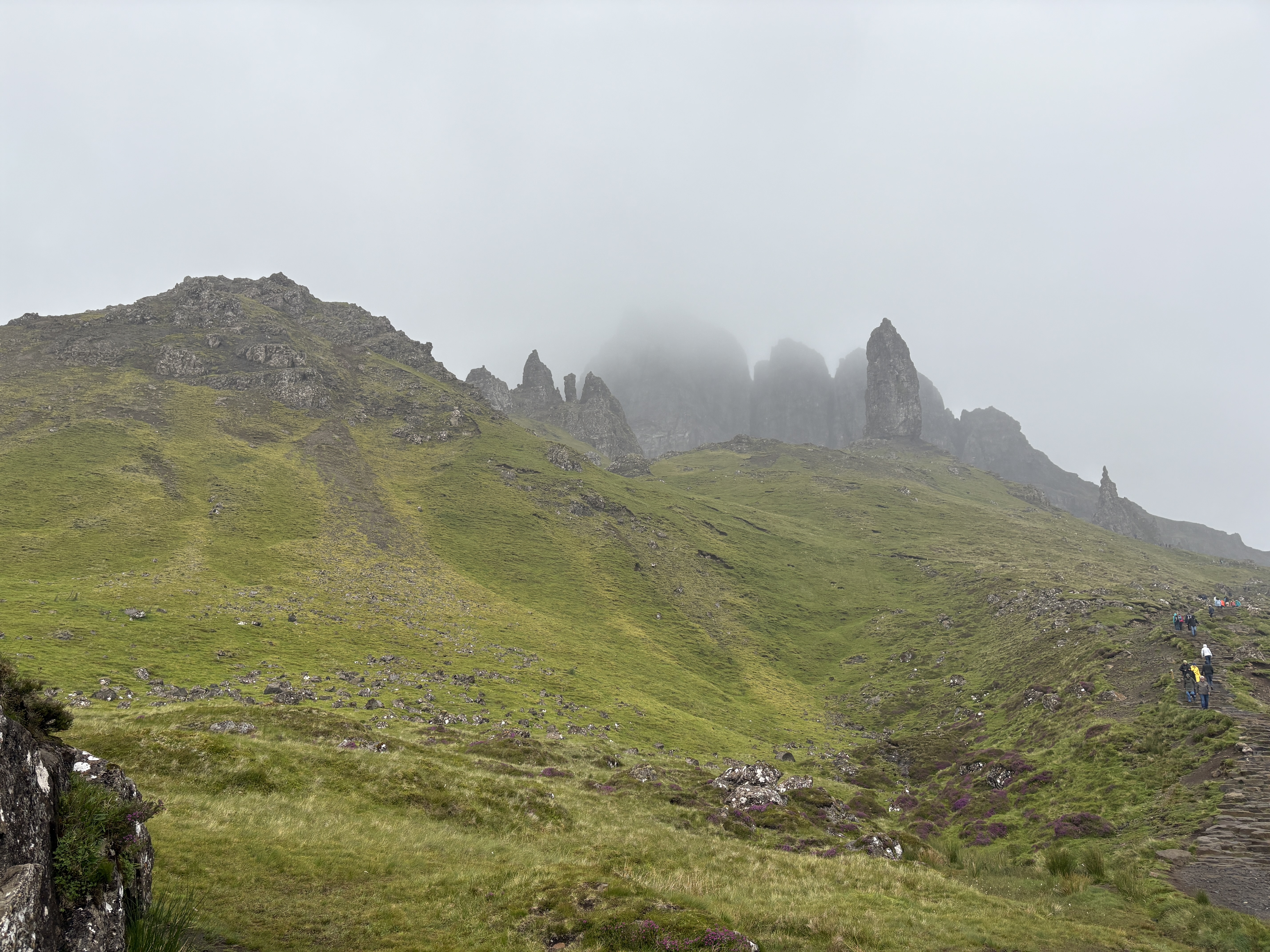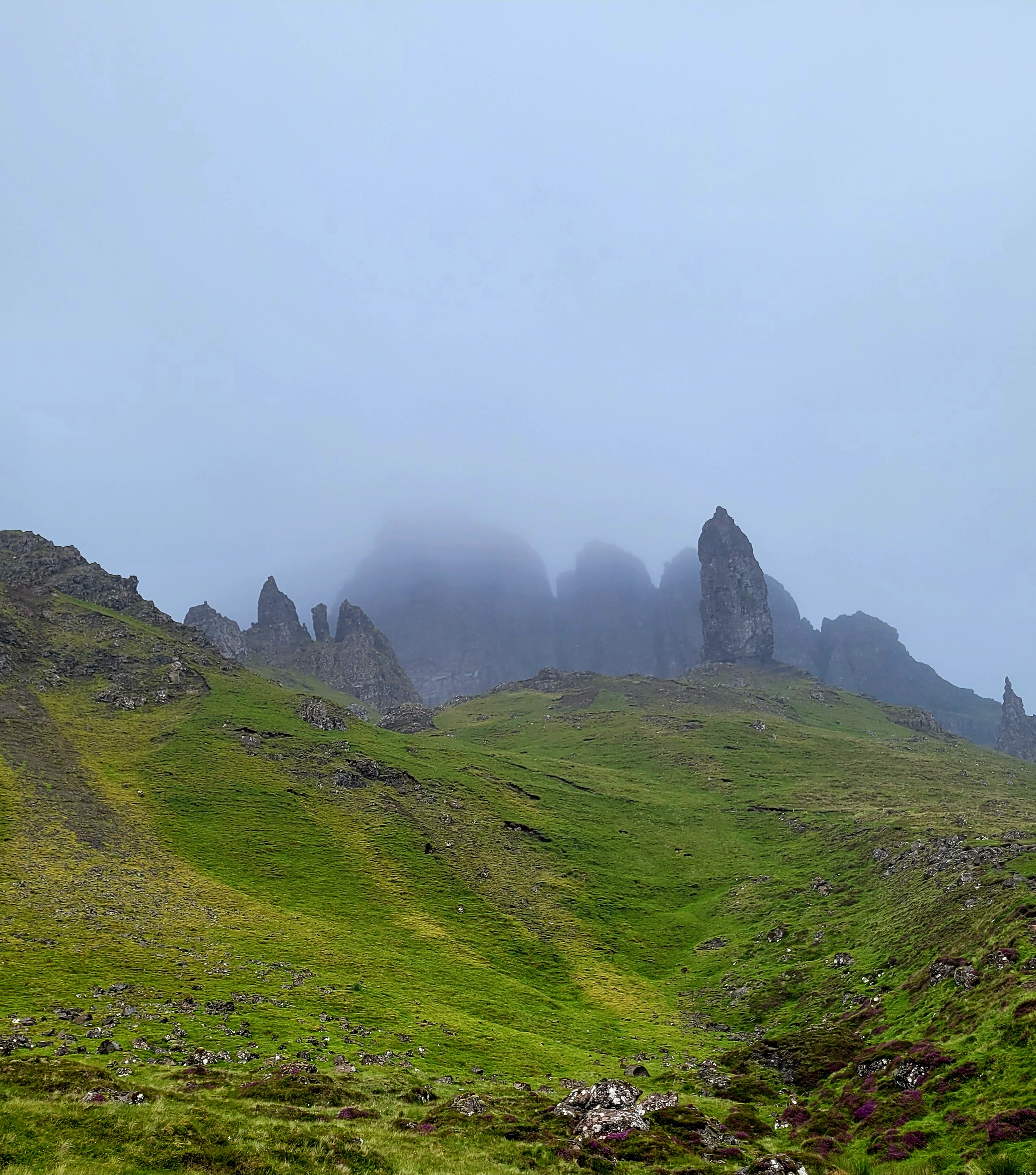 It’s been nice to transition out of Airbnb units and into traditional B&Bs. Our time in the Isle of Skye was especially scenic. Two longer hikes stood out. The first, pictured below, is called the Old Mann of Storr. We happened to get caught in some heavier rain on this one, which made it the toughest hike we’ve done in Europe so far. Still, the towering rock formations were absolutely worth it.
